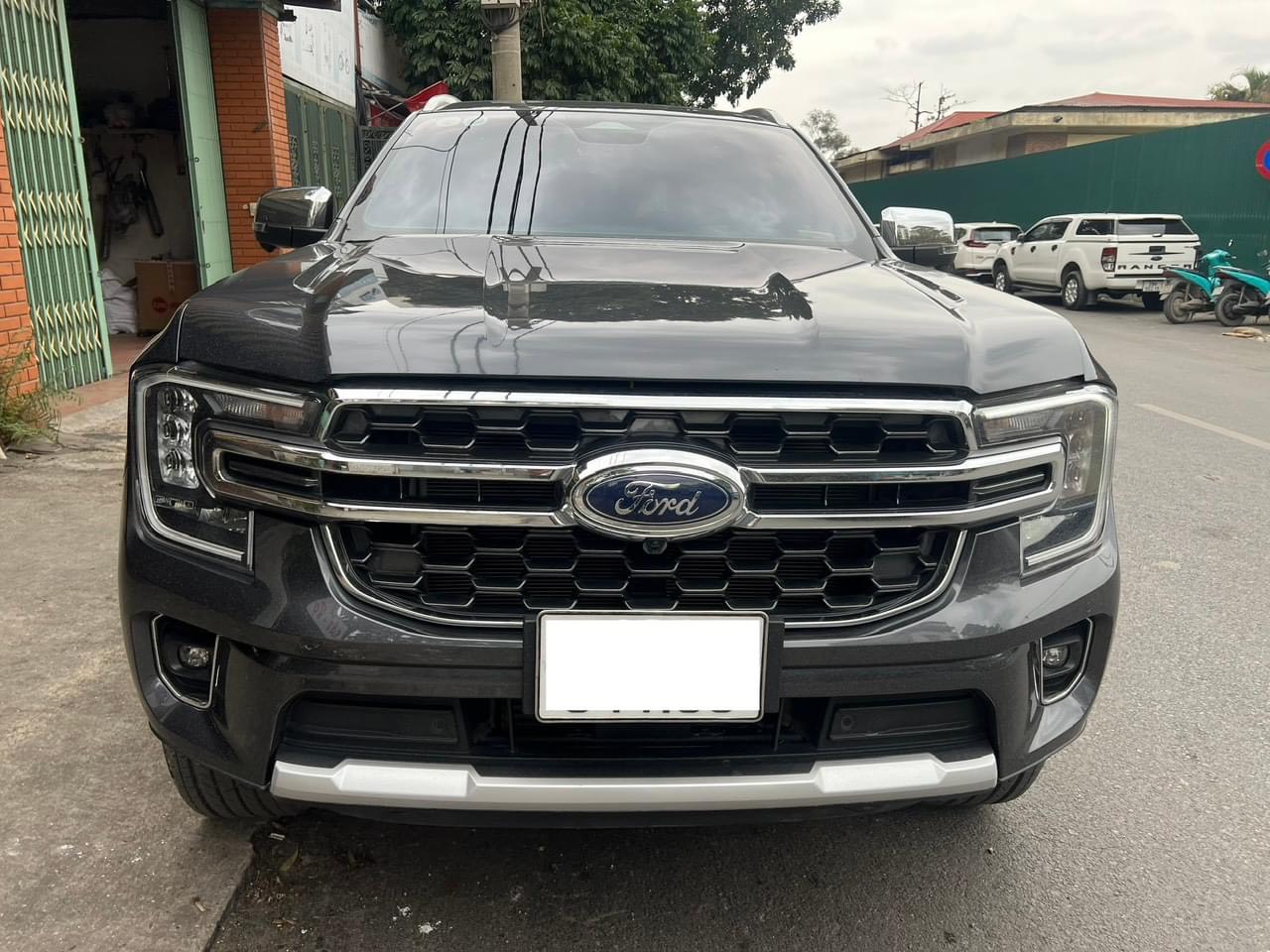 Nhìn trực diện, Ford Everest 2023 gây ấn tượng với mặt ca-lăng mở rộng, tràn sâu vào cụm đèn hai bên bằng một thanh chrome to bản.