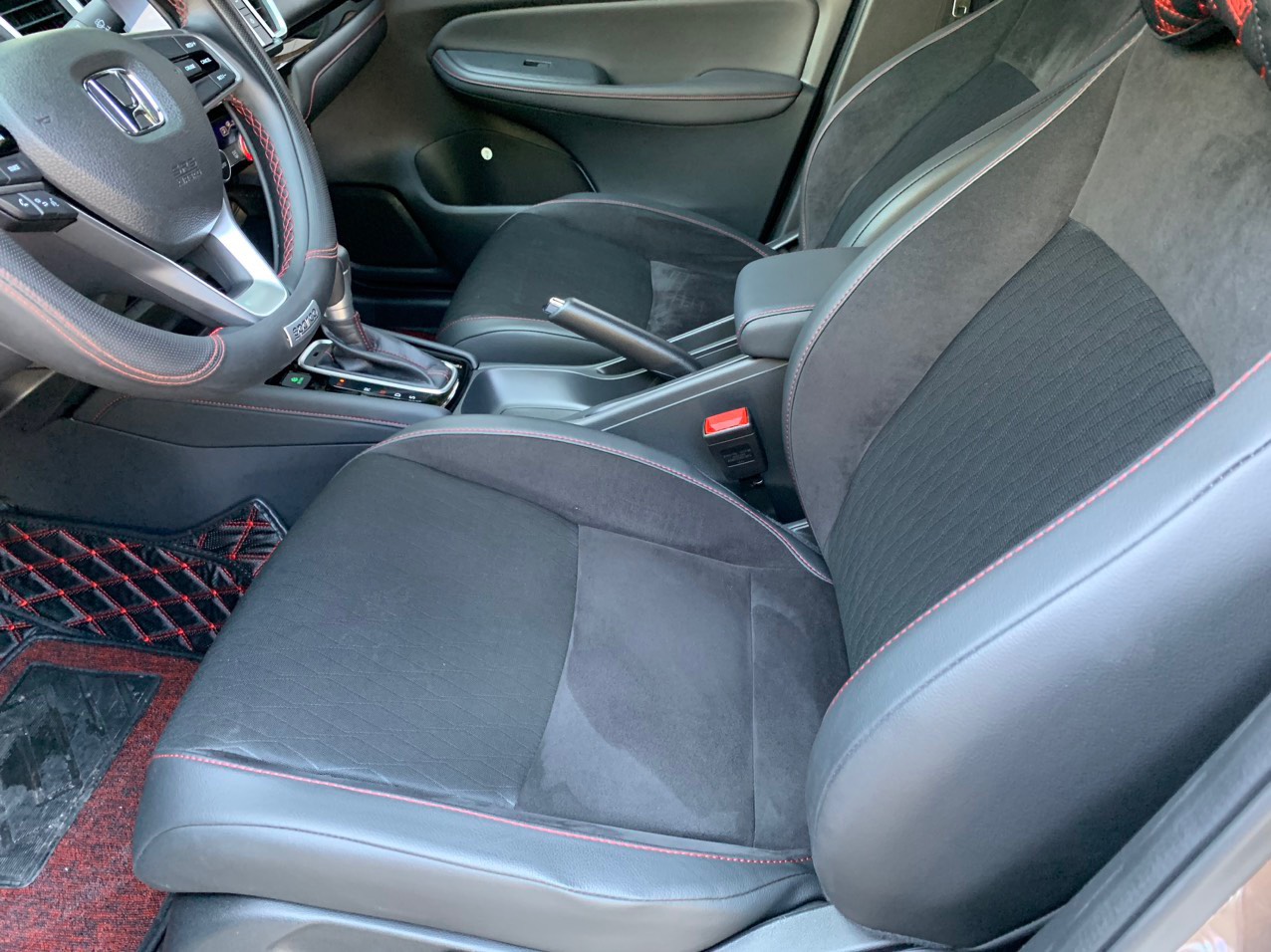 Với Honda City 2022, khách hàng có 2 tùy chọn chất liệu bọc ghế. Trên các bản G và L là chất liệu nỉ, còn trên bản RS cao cấp là ghế da kết hợp da lộn và nỉ, tạo điểm nhấn ấn tượng với viền chỉ đỏ theo phong cách thể thao đặc trưng.