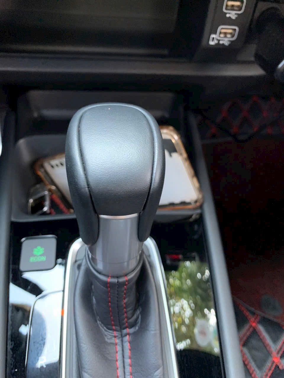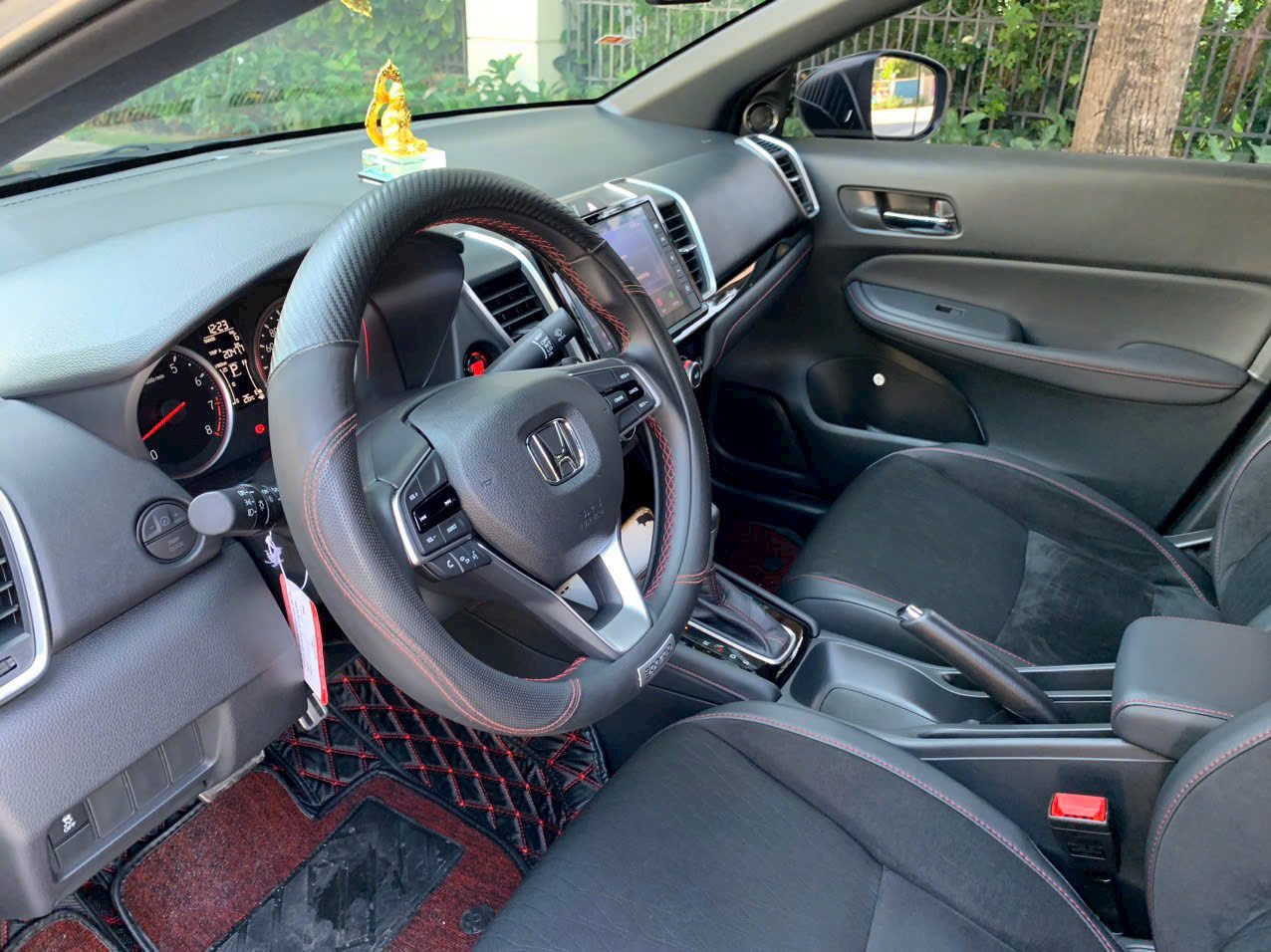 Cụm cần số trên Honda City 2022 có phần tay nắm được bọc da sang trọng, khu vực nấc số thiết kế đẹp mắt với vật liệu nhựa bóng, bao da cũng được tô điểm bởi chỉ khâu màu đỏ mang phong cách thể thao. Phía sau vô-lăng là cụm đồng hồ trung tâm với tông màu đỏ nổi bật, ở giữa là màn hình nhỏ thể hiện thông số khá rõ nét.