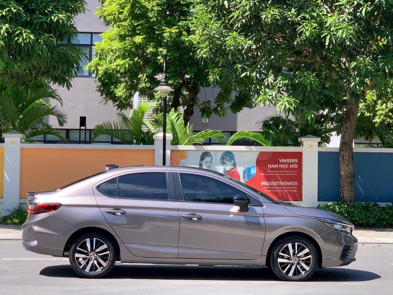 Thân xe Honda City 2022 nổi bật với đường gân dập nổi phía trên tay nắm cửa, nối liền cụm đèn trước sau mang đến cảm giác mạnh mẽ cũng như đôi chút tác dụng về giảm ồn đi di chuyển ở tốc độ cao. Ngay bên dưới là bộ la-zăng 5 chấu kép đường kính 16 inch được hoàn thiện dạng phay tạo ấn tượng thể thao và cứng cáp. Tuy nhiên, chi tiết có thể khiến nhiều người thất vọng trên Honda City 2022 chính là bánh sau sử dụng phanh tang trống thay vì đĩa như hầu hết các mẫu xe đối thủ.