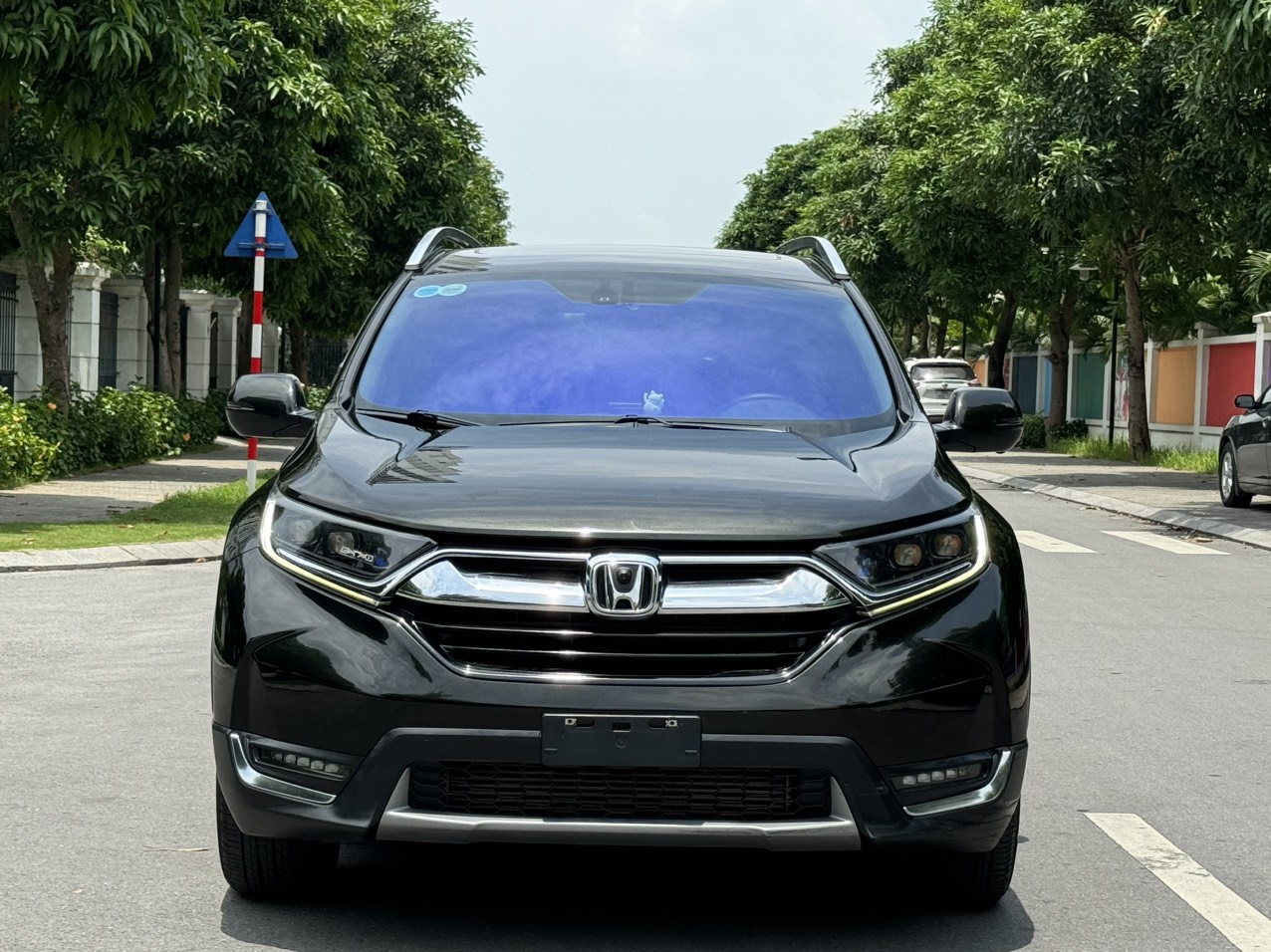 Phía trước, Honda CR-V sở hữu “giao diện” hoàn toàn khác biệt, cứng cáp và có phần “dữ tợn” hơn. Cụ thể, lưới tản nhiệt nay được thiết kế nổi bật với thanh crom sáng bóng, nối liền với 2 cụm đèn pha sắc nét. Trong khi đó, chễm trệ ngay chính giữa là logo chữ H quen thuộc. Ngay dưới, các đường gân dập nổi kết hợp cùng chắn bùn nhô cao góp phần tăng thêm sự mạnh mẽ cho CR-V 2018.