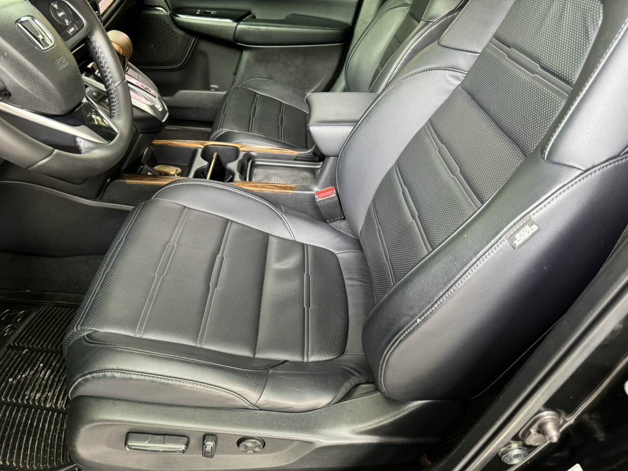 Toàn bộ ghế ngồi trên Honda CR-V 2018 đều được bọc da cao cấp, màu đen cho bản L và vàng be cho bản E. Ở hàng ghế đầu, ghế lái chỉnh điện 8 hướng, hỗ trợ bơm lưng và ghế phụ chỉnh cơ 4 hướng cho cả 2 phiên bản. Bệ tỳ tay trung tâm và hộc chứa đồ khá rộng, thoải mái để đồ dùng cá nhân như điện thoại, túi xách.