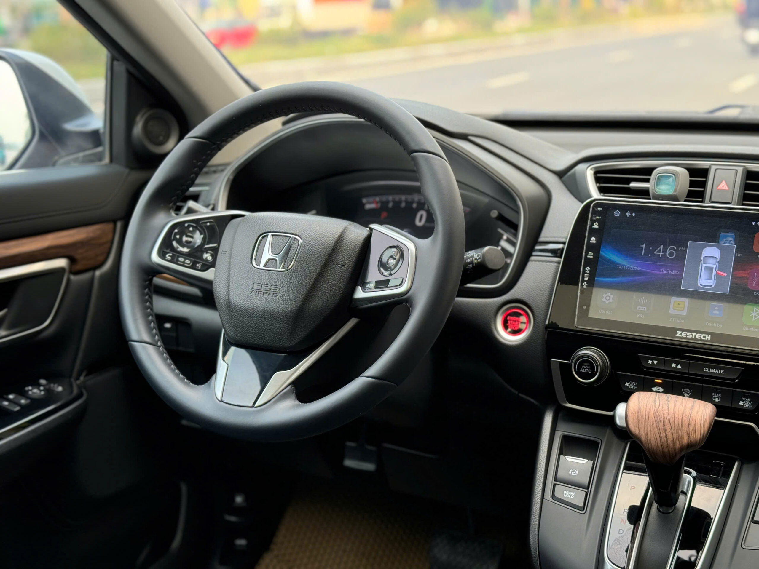 Sau khi “cân chỉnh” ghế ngồi cùng gương cho vừa vặn, tôi bắt đầu chuyến trải nghiệm cùng HR-V bằng cách bấm nút khởi động đặt sau vô-lăng. Ngay lúc này, động cơ làm việc rất đỗi nhẹ nhàng ở chế độ không tải và gần như cabin không hề bị ảnh hưởng bởi tiếng máy. Tầm quan sát từ cột A lẫn gương chiếu hậu hai bên là rõ ràng là điểm cộng trước hết để việc điều khiển HR-V thuận lợi hơn.