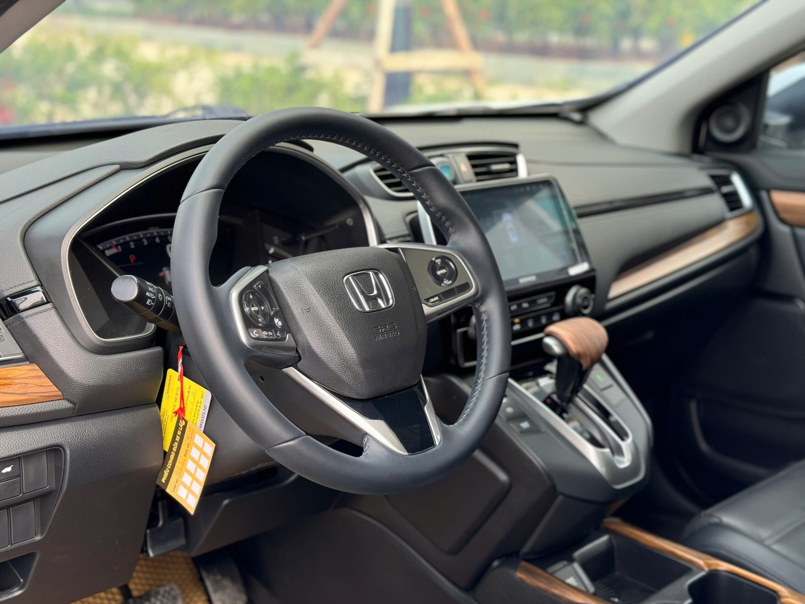 Cũng như các dòng xe khác của Honda, HR-V sử dụng vô-lăng dạng ba chấu hết sức quen thuộc, chi tiết này bọc da để cảm giác cầm nắm vững vàng, chắc chắn hơn. Đặc biệt hơn, vô-lăng còn tích hợp hệ thống điều khiển hành trình Cruise Control. Phía dưới là hai cụm nút điều khiển màn hình thông tin ở cụm đồng và việc nghe gọi điện thoại.