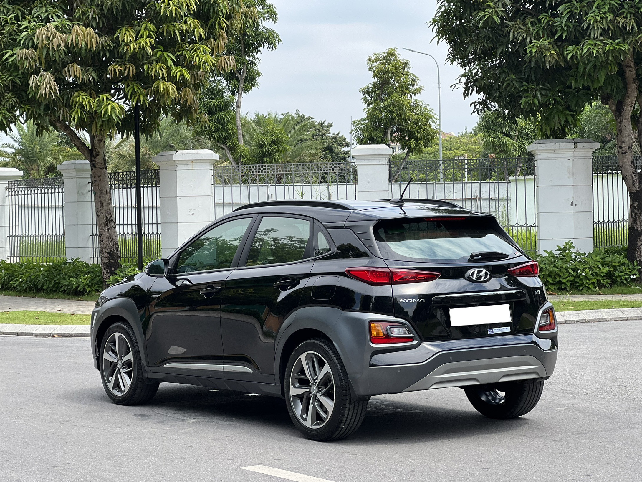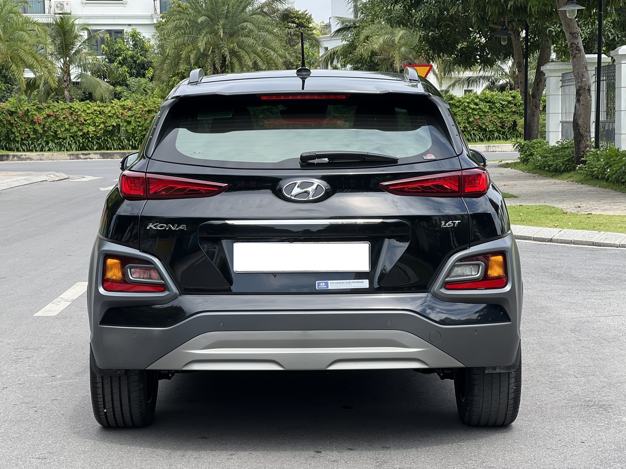 Thiết kế đuôi xe đầy đặn, bệ vệ với phần cản gầm lớn. Cặp đèn hậu dạng LED tạo hình thanh mảnh, ôm gọn hông xe. Đèn phanh, đèn báo rẽ và đèn lùi đặt đặt gọn trong tấm chắn bùn nối liền với vè cua lốp. Ngoài ra, còn có đèn báo phanh tích hợp trên đuôi gió. Một điểm hạn chế của search Hyundai Kona dạng cột, khá bất tiện khi vào hầm chung cư. Ống xả của xe giấu kín dưới gầm.