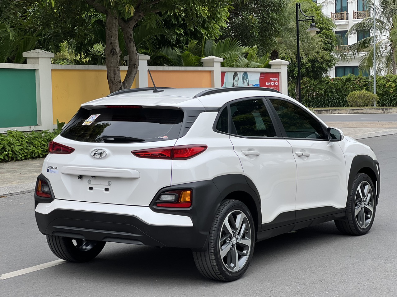 Nhấn nhá thêm tính thể thao cho Hyundai Kona 2019 là những đường gân dập nổi chạy dọc phần thân, thanh gá nóc, đuôi gió phía sau cùng những tấm ốp bảo vệ màu đen ở các hốc đèn và viền bánh.