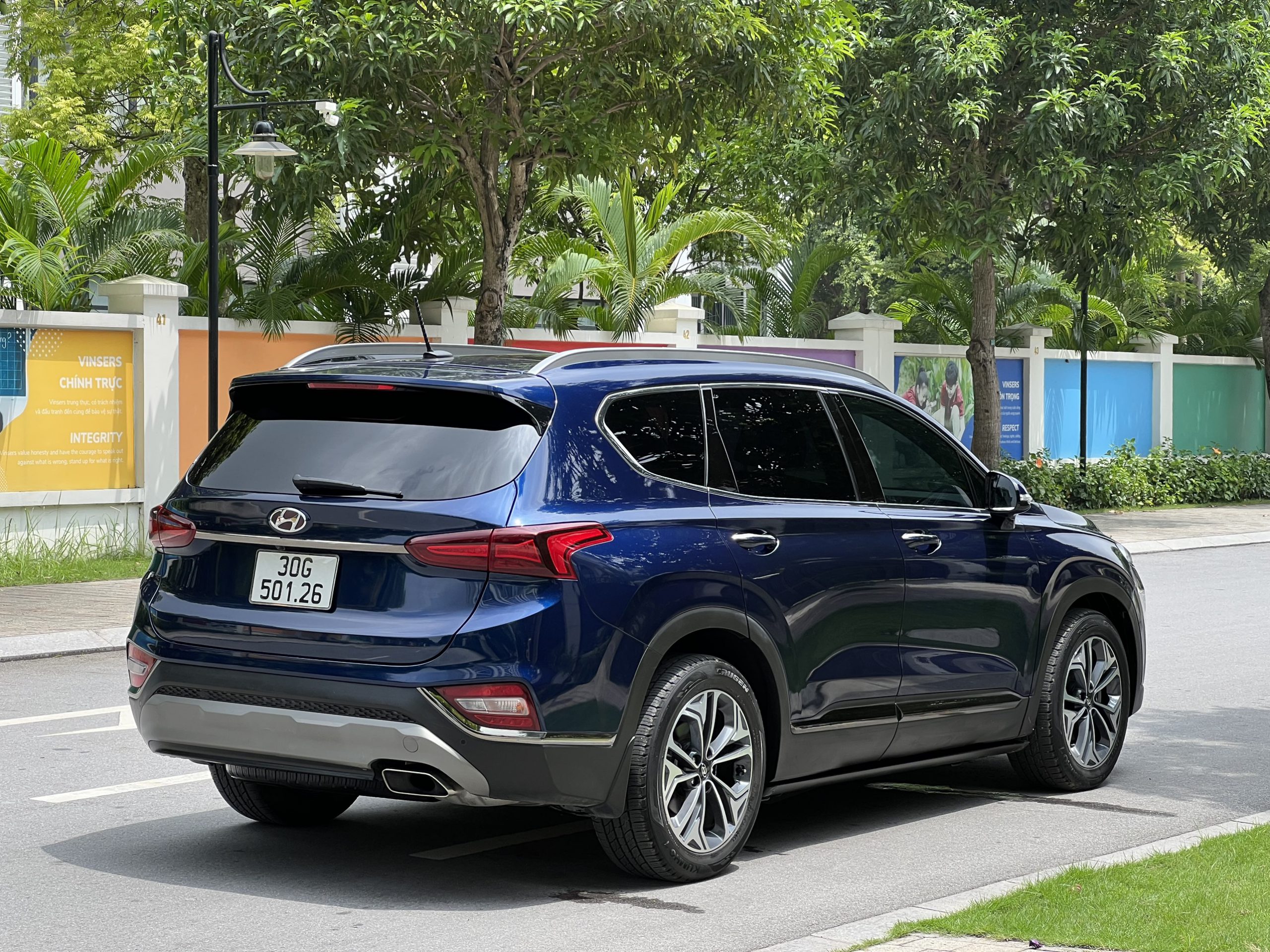 Ở phía sau, phần đuôi xe Hyundai SantaFe 2020 tạo hình khá bệ vệ mang đến ấn tượng vững chãi cho tổng thể. Cặp đèn hậu LED tái thiết kế với phần đồ họa 3D dạng chữ C cách điệu, đèn LED báo phanh phụ bố trí ở đuôi lướt gió, hai cụm đèn phản quang đặt thấp tạo thành năm vị trí báo hiệu hết sức hiệu quả cho các phương tiện khác.