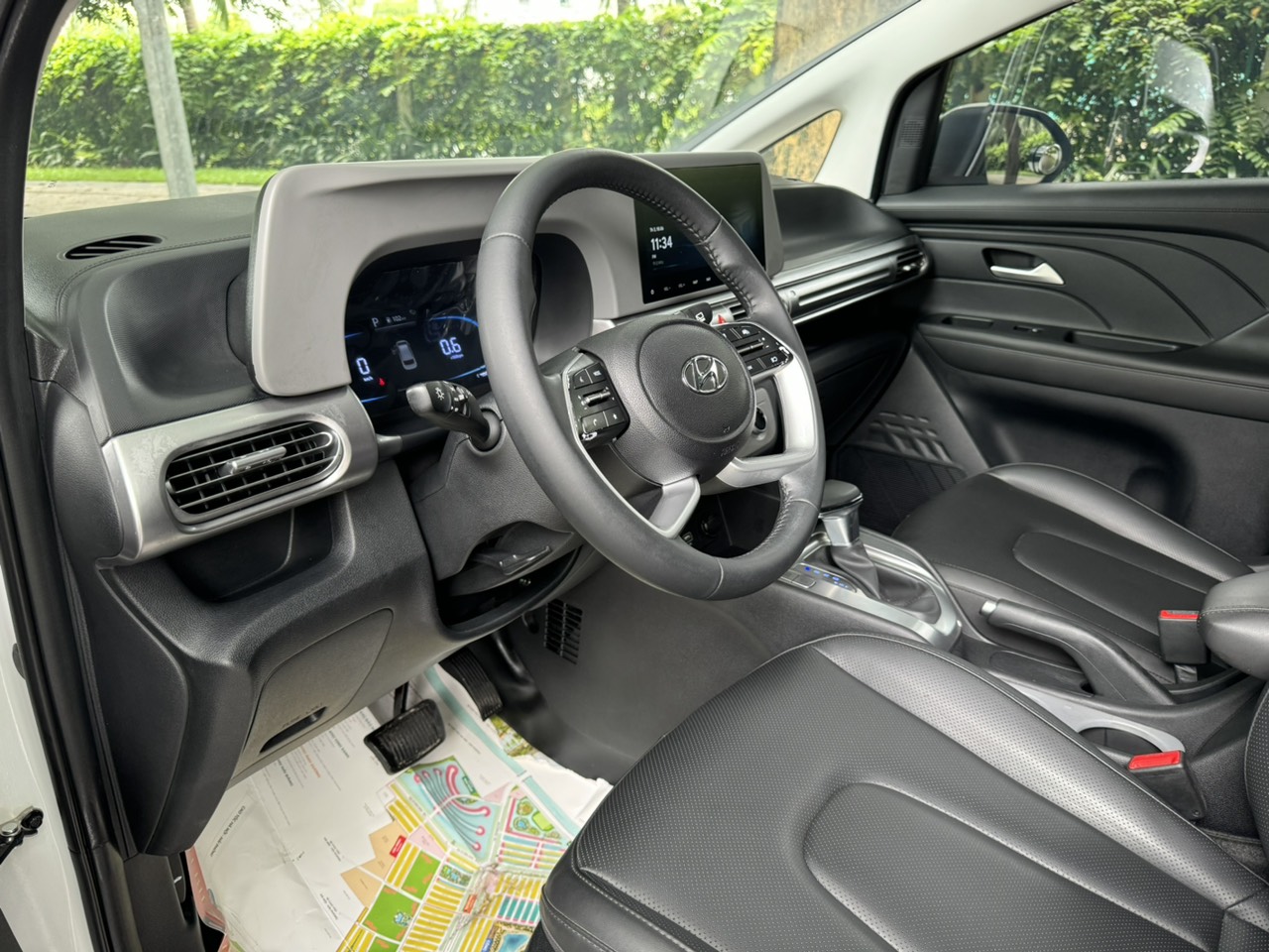 Nội thất Hyundai Stargazer 2022 mang lại 7 chỗ ngồi, trong đó hàng ghế thứ 2 có ghế ngồi tách biệt. Tất cả các hàng ghế được bọc da, vô lăng điều chỉnh cao thấp. Trên bảng táp lô là cụm đồng hồ lái sử dụng màn hình LCD Supervision Color TFT 4,2 inch, điều chỉnh hiển thị theo ý muốn. Ngoài ra còn có màn hình cảm ứng 8 inch hỗ trợ Apple CarPlay và Android Auto, 6 loa.