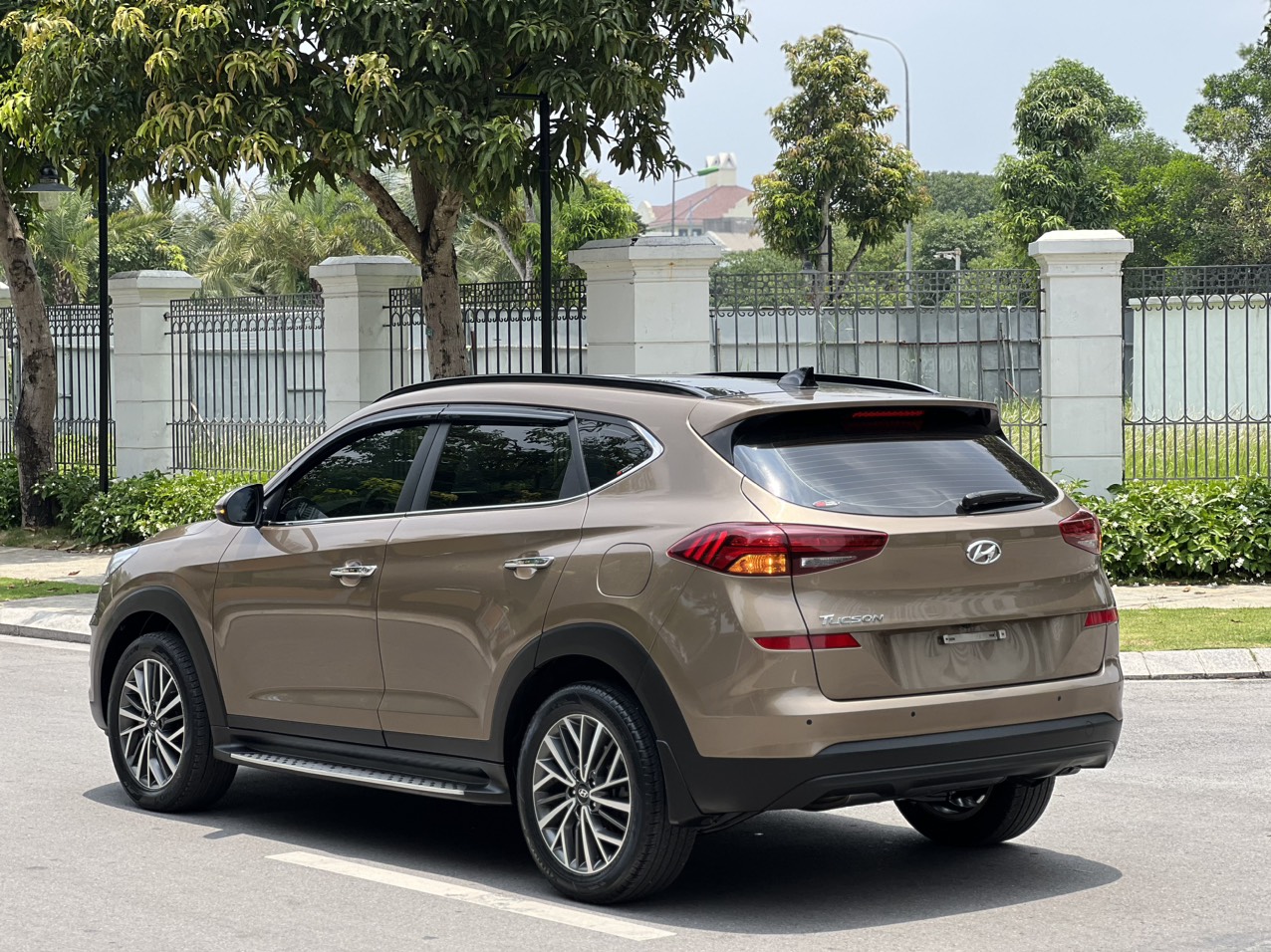 Hai bên hông xe, la-zăng của Hyundai Tucson 2019 được tái thiết kế dạng xoáy, có 3 kích thước lần lượt 17, 18 và 19-inch. Cụm đèn hậu phía sau có dải LED tương đồng với đèn pha phía trước. Phiên bản 1.6 Turbo trang bị thêm ống xả kép.