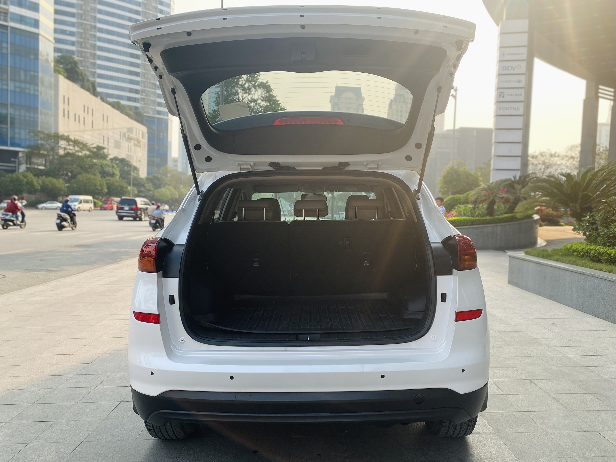Phần khoang hành lý: Khoang hành lý của Tucson 2020 có dung tích tiêu chuẩn đạt 878 lít được đánh giá là rộng rãi. Khoang chứa đồ của xe rộng hơn đến 373L so với đối thủ trực tiếp là Mazda CX-5 (505L). Khi cần chứa thêm vali cho những chuyến đi xa bạn có thể rộng lên 1.753 lít khi gập hàng ghế sau theo tỉ lệ 60:40.