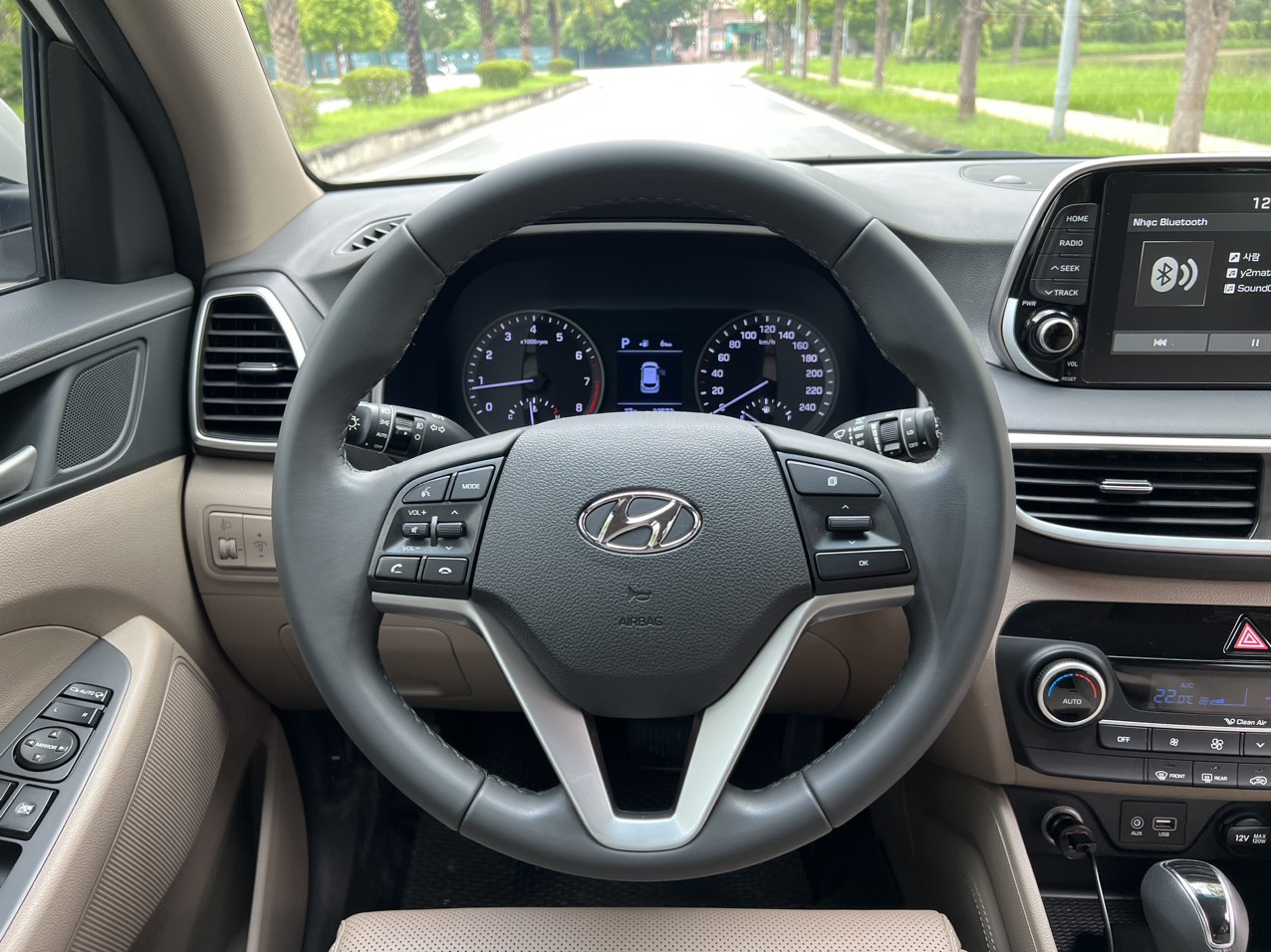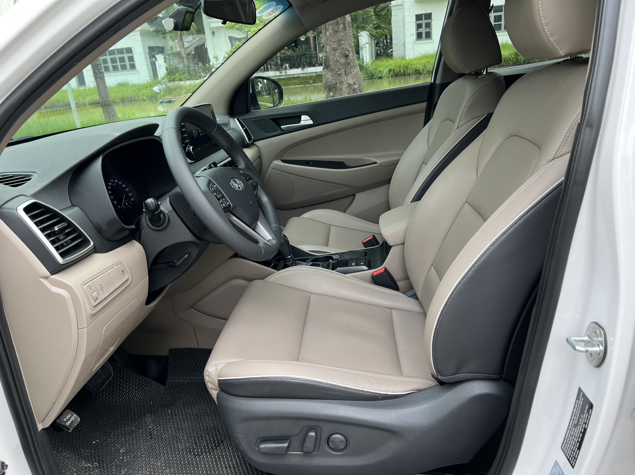 Phần khoang lái: Hệ thống ghế ngồi được bọc da mềm mịn, ghế lái chỉnh điện 10 hướng và ghế phụ chỉnh điện 8 hướng tiện lợi. Vô lăng trên Hyundai Tucson 2020 vẫn giữ nguyên với kiểu 3 chấu cùng chất liệu bọc da và có phần đáy mạ bạc như phiên bản cũ, bảng điều khiển trung tâm có nhiều thiết bị được bọc nhựa màu đen bắt mắt. Hai ghế trước rất chắc chắn với bề mặt đệm dày và ôm sát cơ thể, nhìn chung phần khoang lái tạo cảm giác thoải mái và tiện dụng cho người lái.