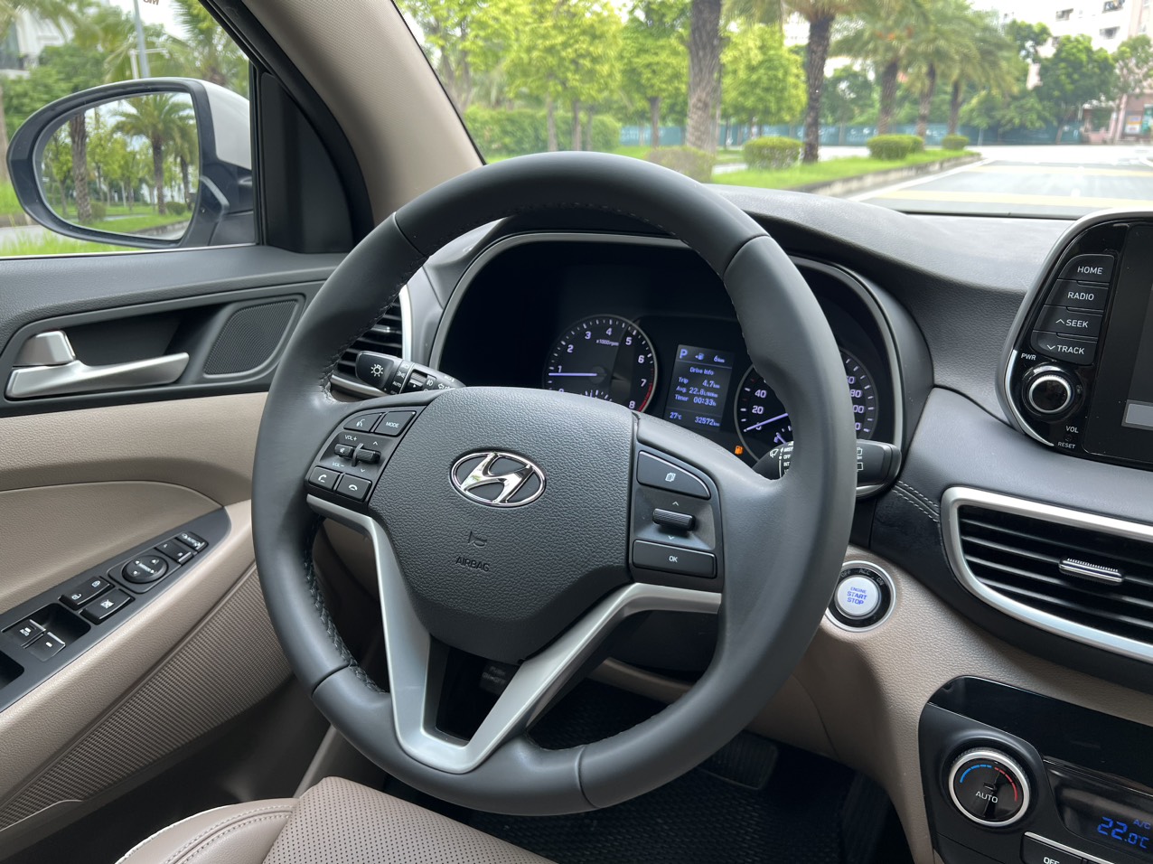 Phần khoang lái: Hệ thống ghế ngồi được bọc da mềm mịn, ghế lái chỉnh điện 10 hướng và ghế phụ chỉnh điện 8 hướng tiện lợi. Vô lăng trên Hyundai Tucson 2020 vẫn giữ nguyên với kiểu 3 chấu cùng chất liệu bọc da và có phần đáy mạ bạc như phiên bản cũ, bảng điều khiển trung tâm có nhiều thiết bị được bọc nhựa màu đen bắt mắt. Hai ghế trước rất chắc chắn với bề mặt đệm dày và ôm sát cơ thể, nhìn chung phần khoang lái tạo cảm giác thoải mái và tiện dụng cho người lái.