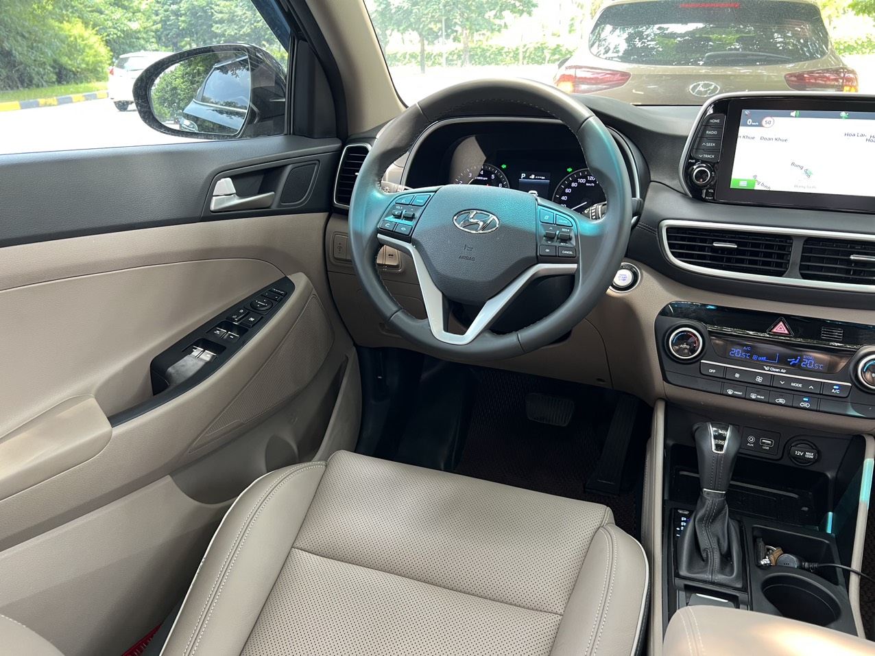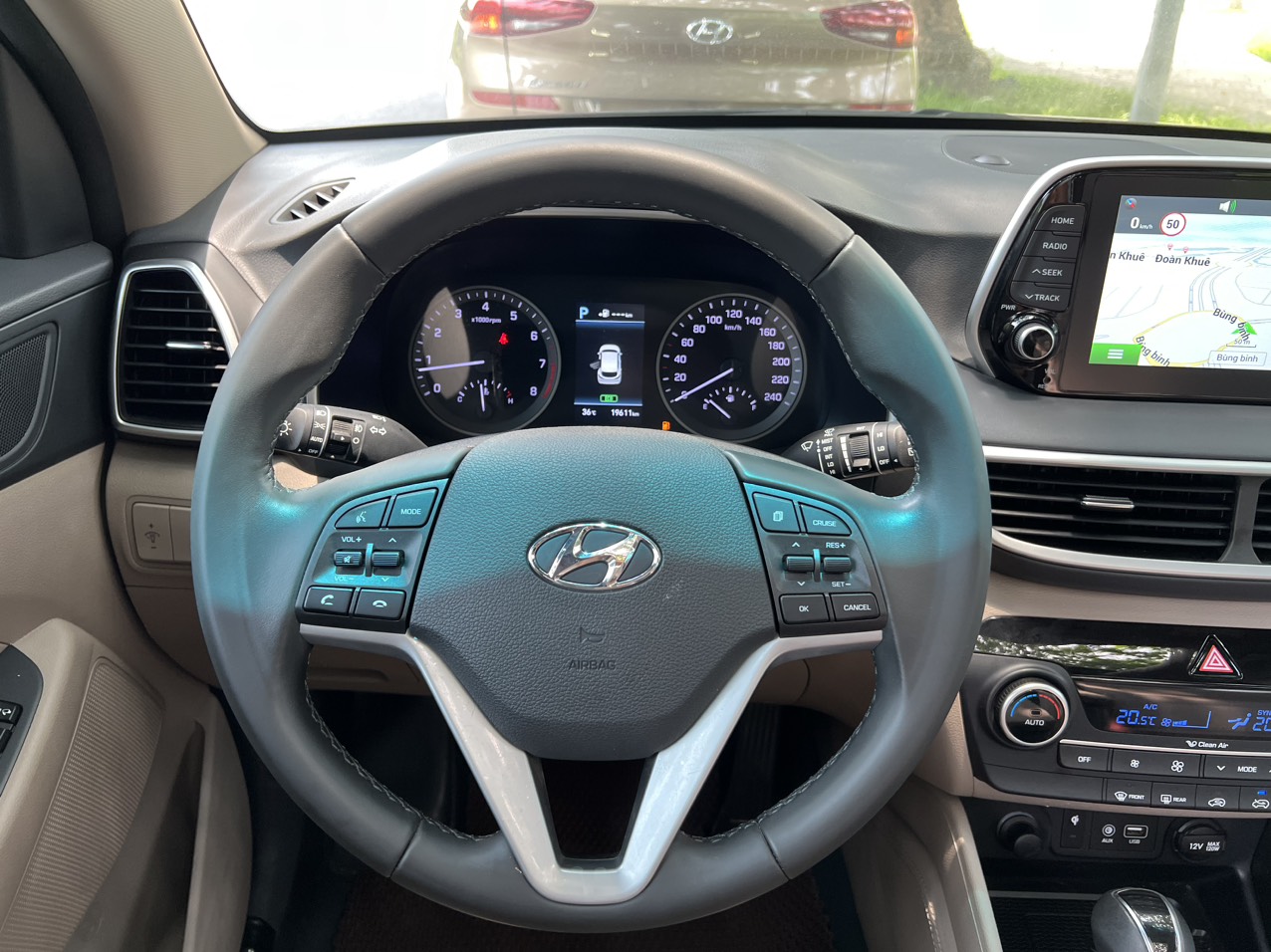 Vô-lăng Hyundai Tucson 2019 dạng ba chấu, bọc da và tích hợp các nút chức năng cần thiết như điều chỉnh âm lượng, đàm thoại rảnh tay, ga tự động Cruise Control… Ở lần nâng cấp này thì xe vẫn chưa có lẫy chuyển số phía sau vô lăng. Ngoài ra thì các vị trí cửa kính trên xe đều có thể chỉnh điện. Ở vị trí người lái có bổ sung thêm khả năng chống kẹt tự động nhằm tăng tính an toàn.