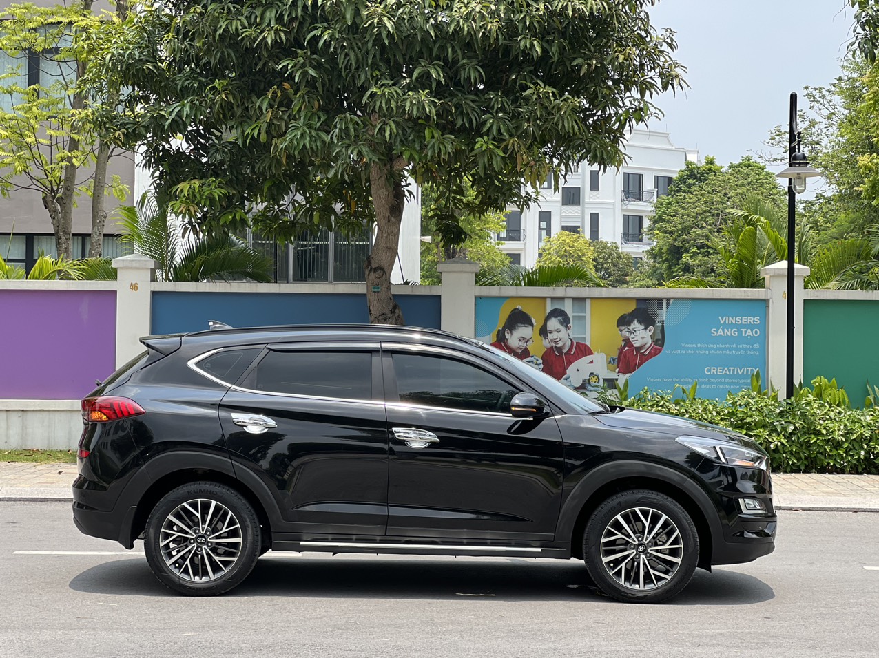 Hai bên hông xe, la-zăng của Hyundai Tucson 2019 được tái thiết kế dạng xoáy, có 3 kích thước lần lượt 17, 18 và 19-inch. Cụm đèn hậu phía sau có dải LED tương đồng với đèn pha phía trước. Phiên bản 1.6 Turbo trang bị thêm ống xả kép.