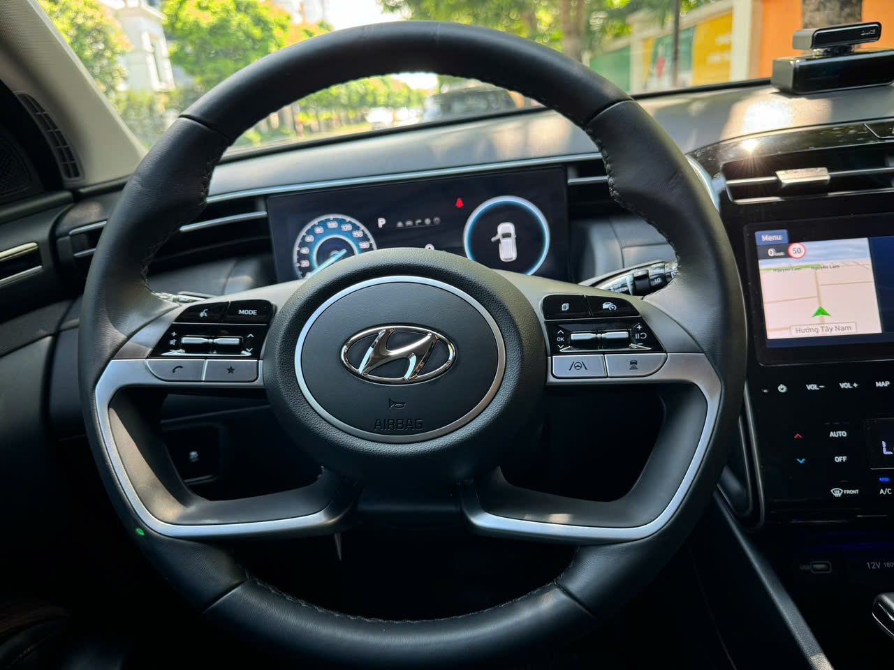 Hyundai Tucson 2023 sở hữu vô lăng 4 chấu theo phương ngang, gợi liên tưởng đến những chiếc vô lăng trên các phiên bản thể thao của hãng xe Audi. Ngoài ra, tính năng sưởi vô lăng cũng được tích hợp trên hầu hết các phiên bản, ngoại trừ bản xăng Tiêu chuẩn. Ngay dưới vô lăng là lẫy chuyển số thể thao, chỉ được trang bị trên các bản dầu Đặc biệt và xăng 1.6 Turbo.