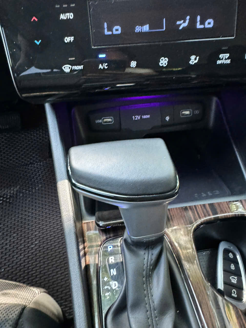 Cụm điều khiển điều hòa trên xe là dạng cảm ứng, nối liền cùng màn hình trung tâm đặt ngay bên dưới, tạo ấn tượng công nghệ và gọn gàng hơn. Cần số dạng nút bấm cũng là điểm nhấn độc đáo trên phiên bản dầu Đặc biệt và xăng Turbo của Hyundai Tucson 2023, mang đến nét hiện đại và cao cấp vượt tầm phân khúc cho mẫu crossover Hàn Quốc.
