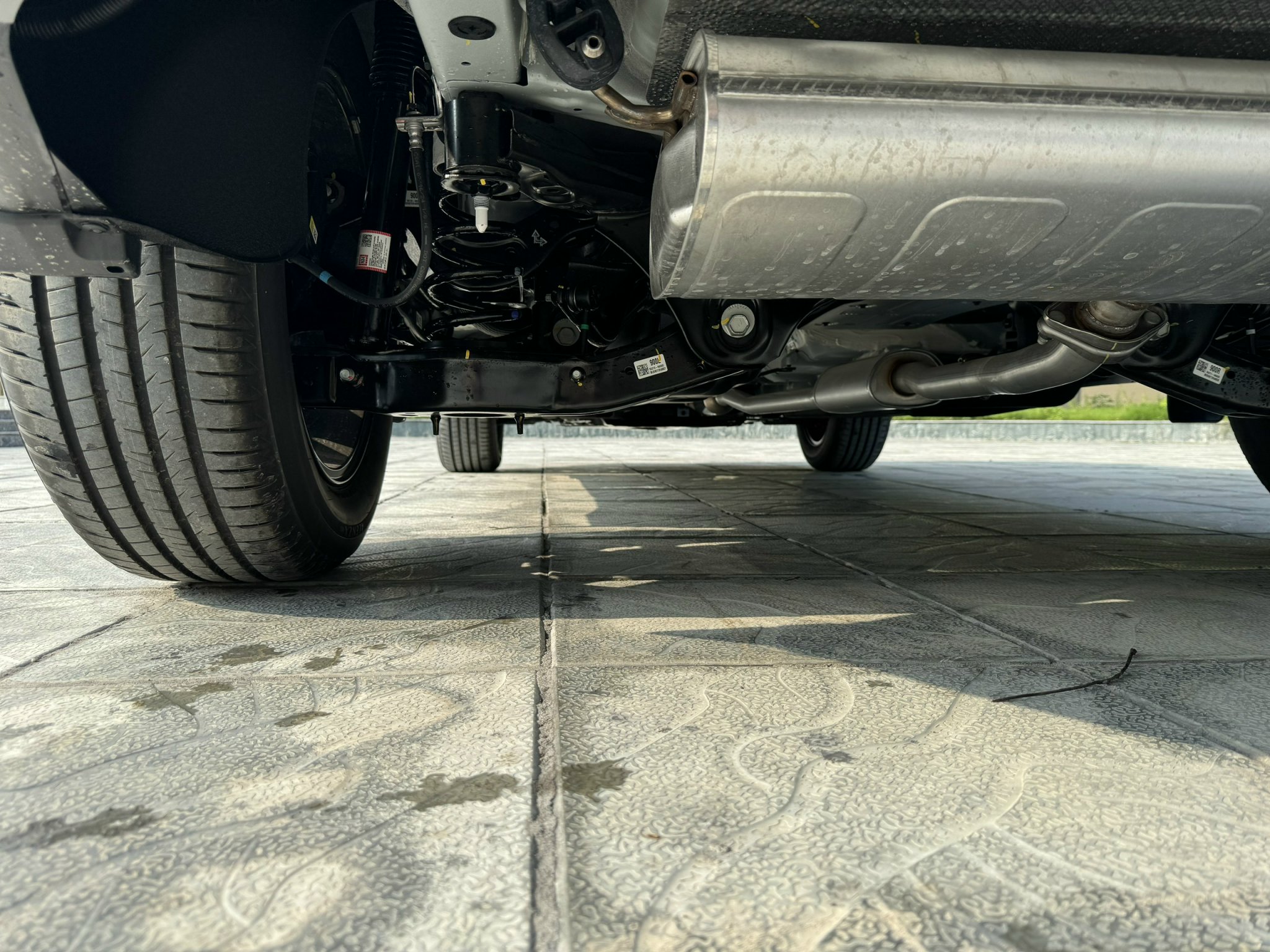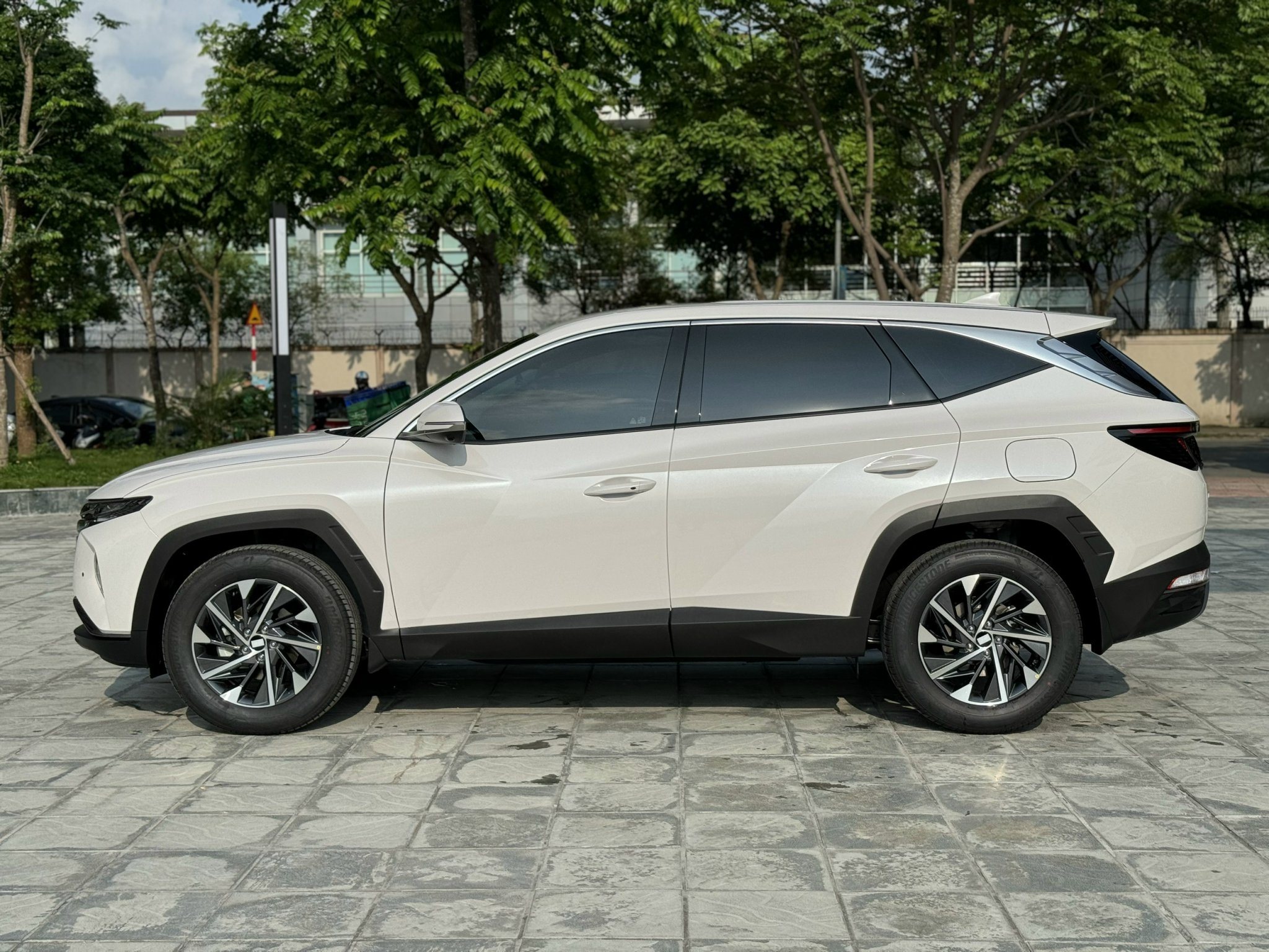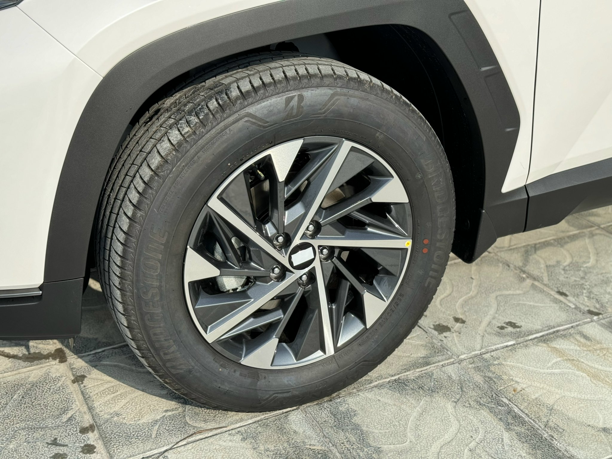 Nhìn xuống “dàn chân” của Hyundai Tucson 2024, phiên bản xăng Turbo 1.6L cao cấp nhất được trang bị độc quyền bộ lazang 5 chấu 19 inch, phay 2 tone màu độc đáo. Trong khi 2 biến thể Đặc biệt sở hữu bộ mâm kích thước 18 inch với thiết kế đa chấu, riêng bản xăng Tiêu chuẩn chỉ sử dụng bộ mâm đúc màu bạc 17 inch.