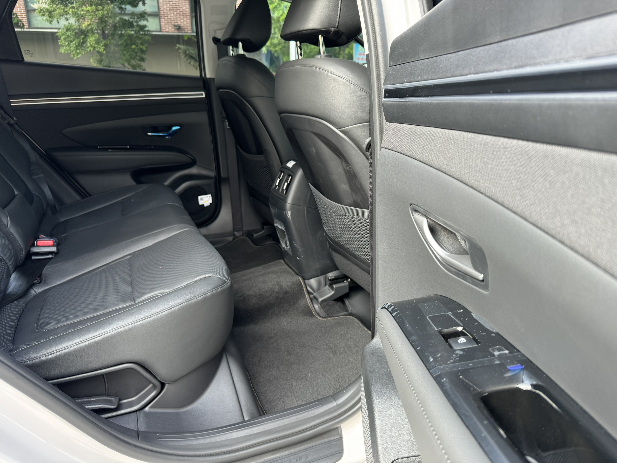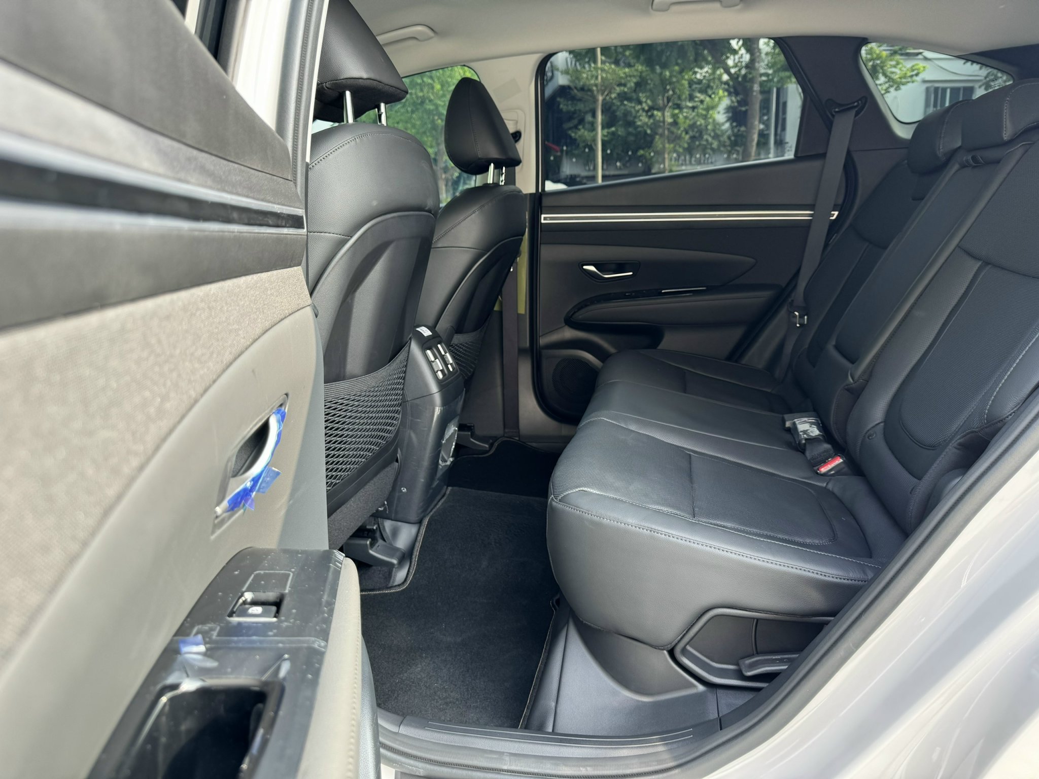 Ở hàng ghế sau, Hyundai Tucson 2024 hiện diện đầy đủ tựa đầu 3 vị trí và bệ để tay trung tâm tích hợp khay đựng cốc. Khoảng để chân tại đây khá rộng rãi, thoải mái cho cả những hành khách cao trên 1m7. Đặc biệt, người ngồi cũng có thể tùy chỉnh độ ngả lưng phù hợp nhằm tạo cảm giác ngồi xe thư giãn trên những hành trình dài.