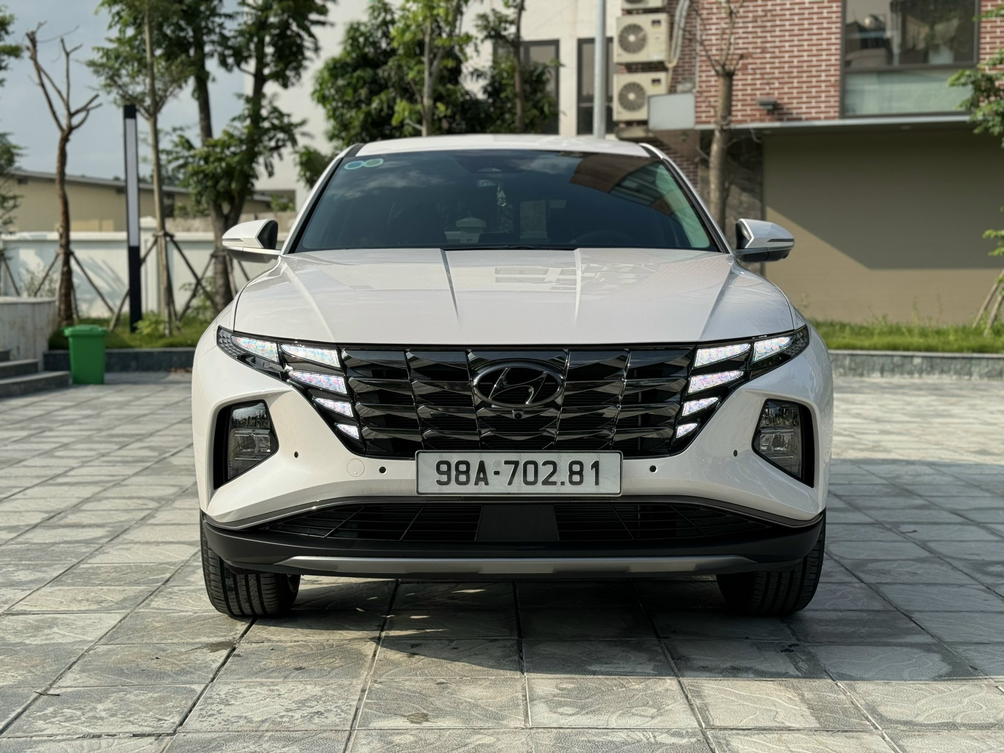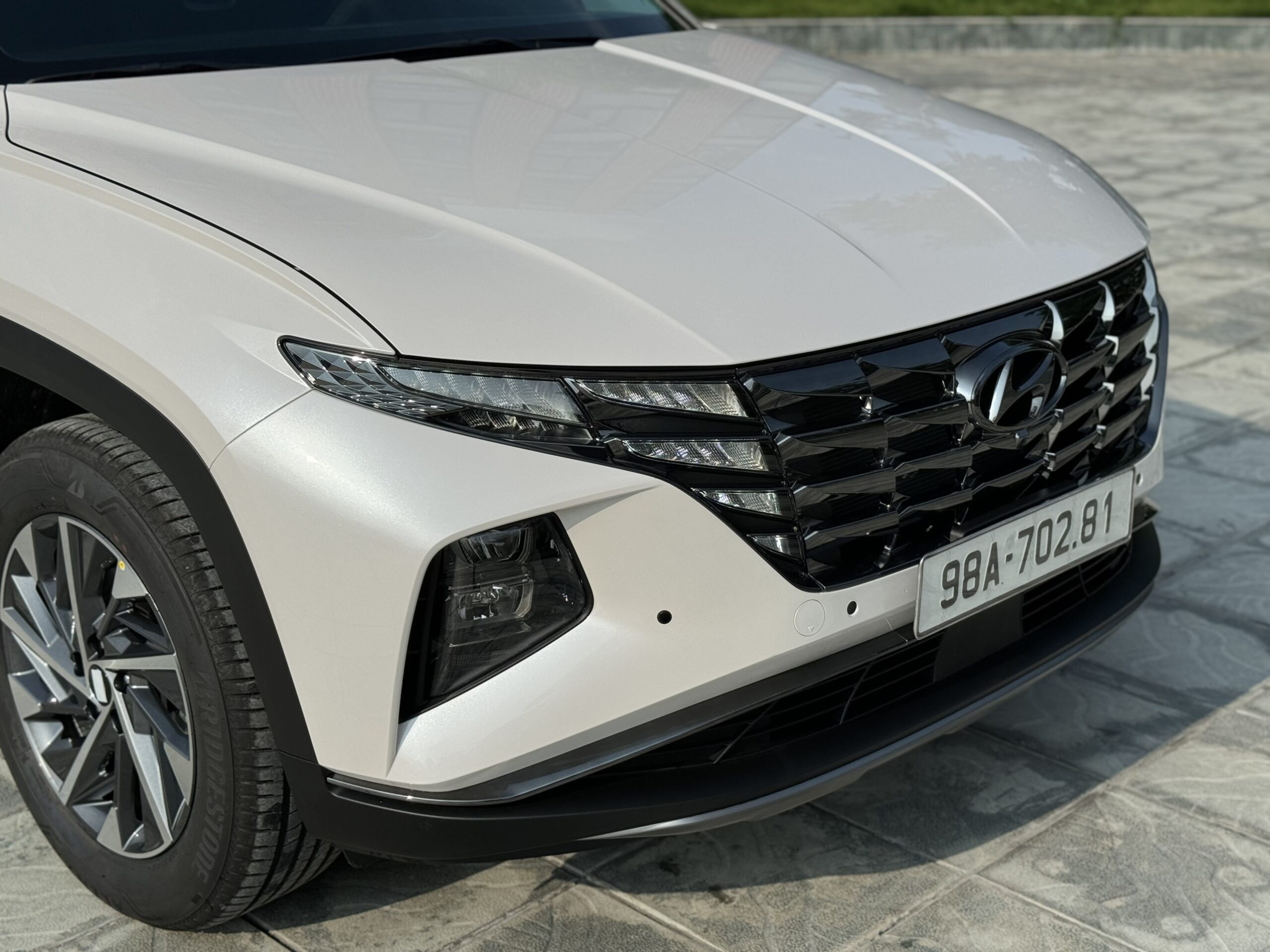 Khu vực cản trước trên Hyundai Tucson 2024 được tạo hình chữ X cách điệu, vừa vặn để đặt cụm đèn chiếu sáng chính của xe. Song, vị trí này khá thấp nên dễ khiến người dùng quan ngại về tầm chiếu sáng, cũng như sự cố hư hỏng do đất đá văng khi vận hành trên những cung đường xấu.