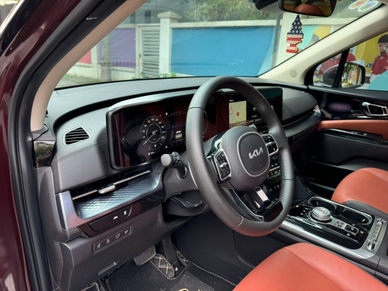 Kia Carnival 2022 có không gian nội thất khoa học, rộng rãi và sang trọng: Khoang lái đậm chất công nghệ với cụm màn hình đa thông tin 12.3 inches, nút xoay chuyển số điện tử giúp thao tác thuận tiện.