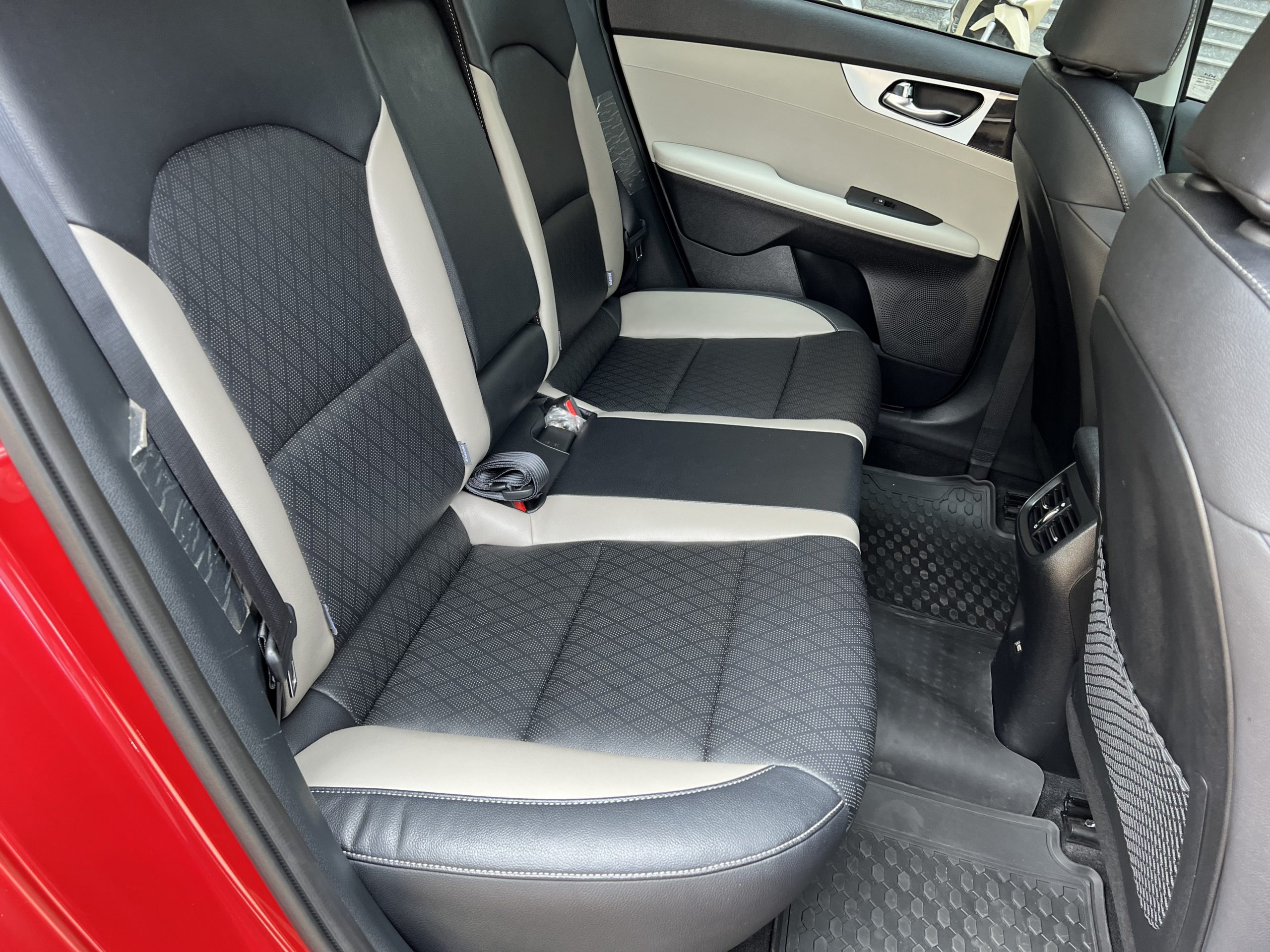 Hàng ghế sau trên KIA K3 2022 được trang bị đầy đủ 3 tựa đầu có thể điều chỉnh cùng bệ tỳ tay trung tâm tích hợp vào lưng ghế giữa