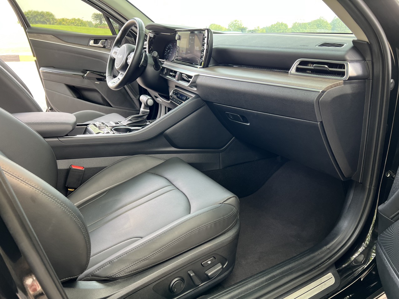 Thiết kế hệ thống ghế trên Kia K5 cũng rất trẻ trung và ấn tượng. Toàn bộ ghế ở các phiên bản đều được bọc da, riêng phiên bản cao nhất GT Line sử dụng ghế da pha hai màu có thêu logo. Cả ghế lái và ghế hành khách phía trước đều có chỉnh điện, trong đó ghế lái thể chỉnh điện 10 hướng.