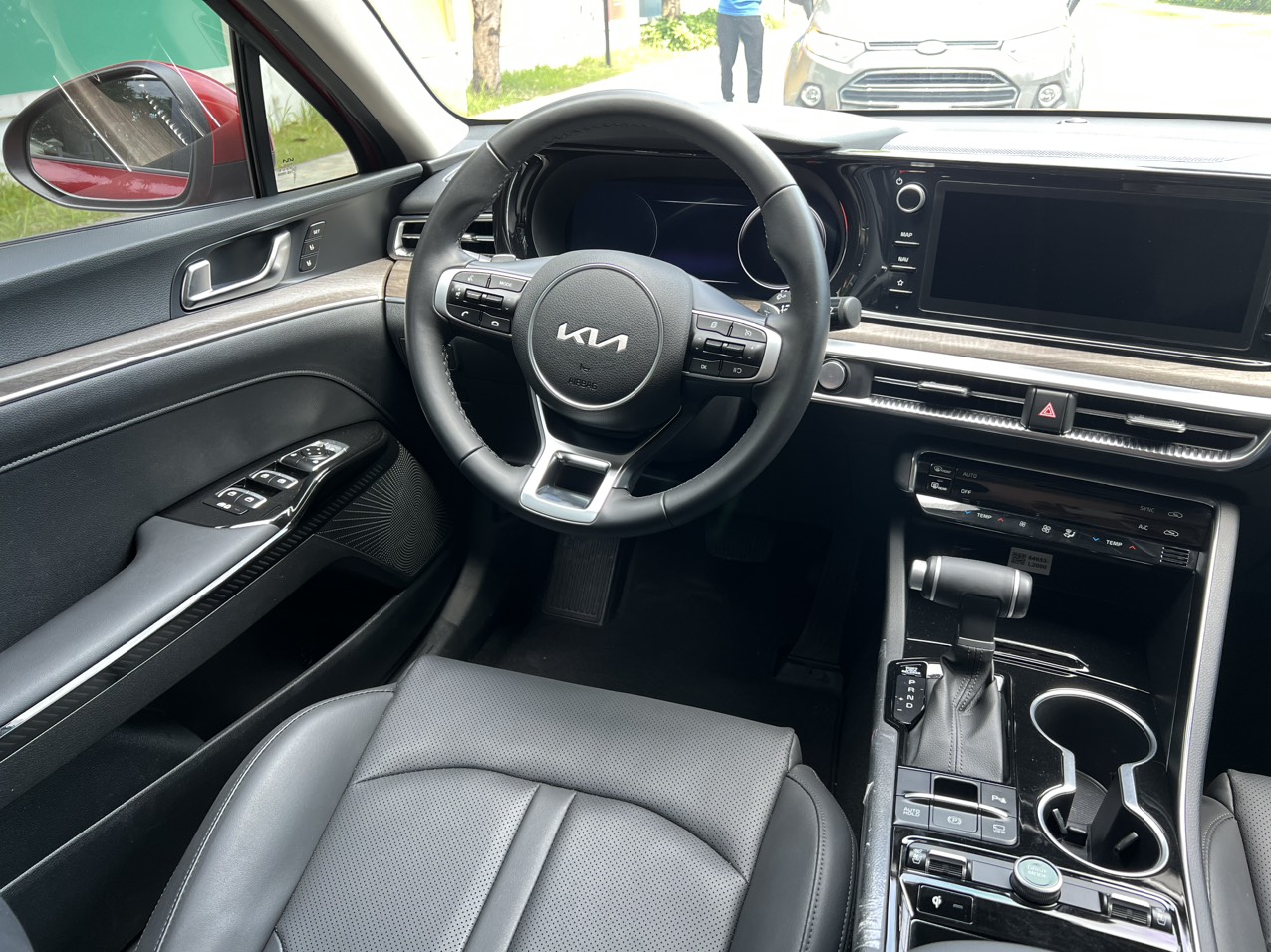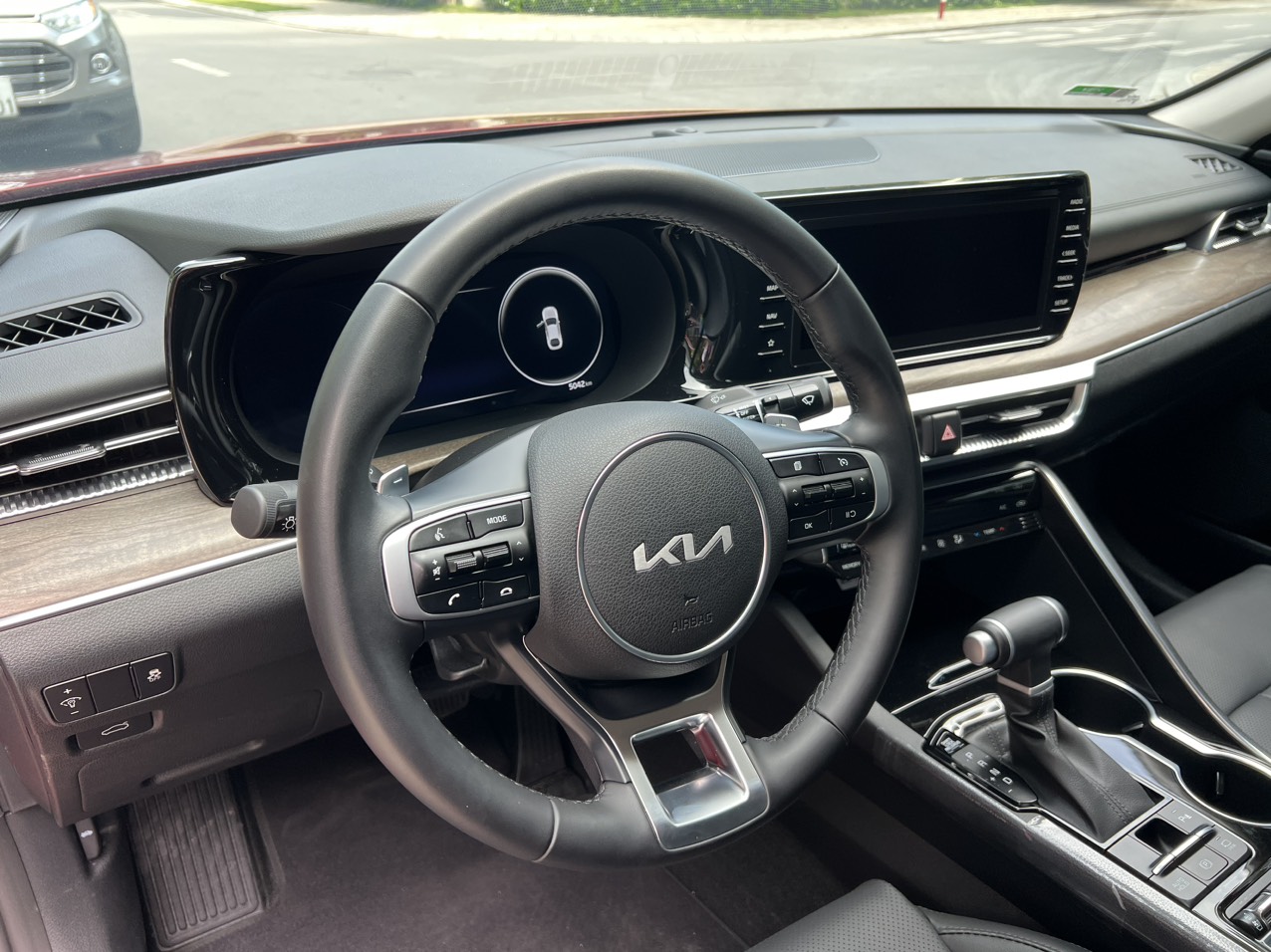 Trang bị an toàn cũng là điểm mạnh của K5 khi xe có 6 túi khí, chống bó cứng phanh, cân bằng điện tử, hỗ trợ khởi hành ngang dốc, camera quan sát toàn cảnh, hiển thị điểm mù trên màn hình, cảm biến áp suất lốp, cảm biến va trạm trước, sau, phanh tay điện tử tích hợp chức năng Auto Hold…