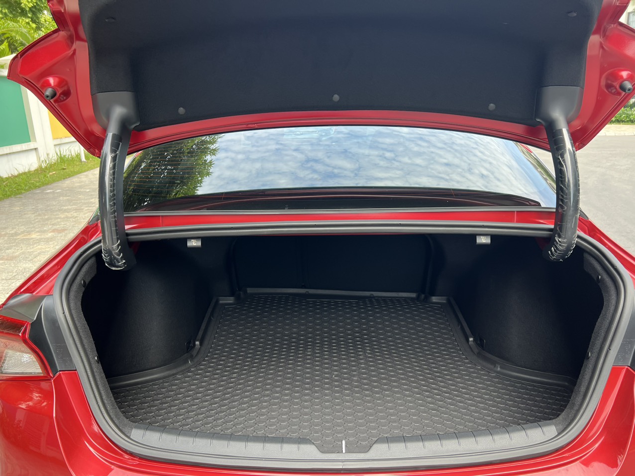 Xe trang bị đầy đủ hệ thống cảm biến đỗ xe phía sau, camera lùi… giúp lái và đỗ xe an toàn hơn. Cản sau được ốp nhựa đen, đi cùng với ống xả kép cỡ lớn mạ crom được làm hình thang. Hơi đáng tiếc là xe không được trang bị cốp điện, tuy nhiên đổi lại sẽ là một không gian chứa đồ lớn, có dung tích lên tới 510 lít.