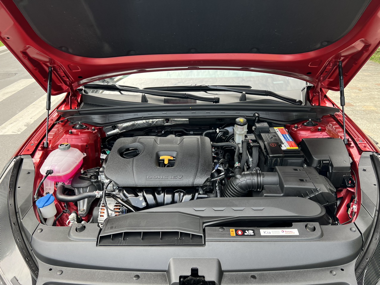 Mặt ca-lăng vẫn được làm kiểu “mũi hổ” với các nan lưới được thiết kế theo phong cách “Shark skin” và được bố trí theo cấu trúc đa tầng. Logo Kia kiểu mới được đặt ở trên nắp capo có nhiều đường gân dập nổi, trông rất thể thao.