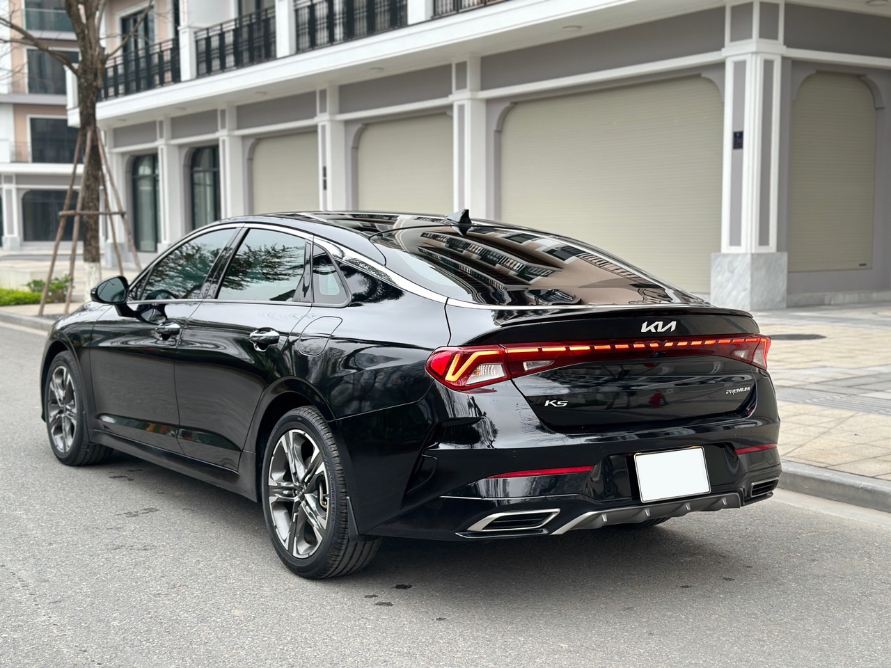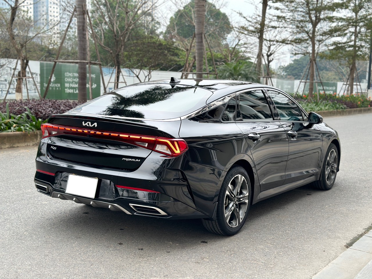 Phần đuôi của Kia K5 tiếp tục mang lại những đường nét thể thao, cá tính và hiện đại. Rất nhiều đường kẻ ngang ở phần đuôi tạo nên sự đồng bộ trong thiết kế. Từ cụm đèn hậu sử dụng công nghệ LED được nối liền 2 bên với kiểu dải đèn được làm kiểu “Heartbeat”; cho tới những đường gân dập nổi tạo ra vẻ ngoài ấn tượng, trẻ trung.
