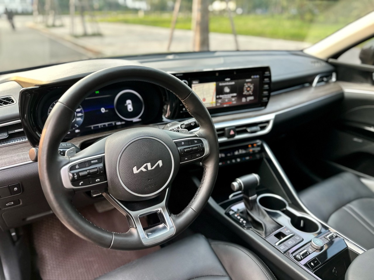 Trang bị an toàn cũng là điểm mạnh của K5 khi xe có 6 túi khí, chống bó cứng phanh, cân bằng điện tử, hỗ trợ khởi hành ngang dốc, camera quan sát toàn cảnh, hiển thị điểm mù trên màn hình, cảm biến áp suất lốp, cảm biến va trạm trước, sau, phanh tay điện tử tích hợp chức năng Auto Hold…