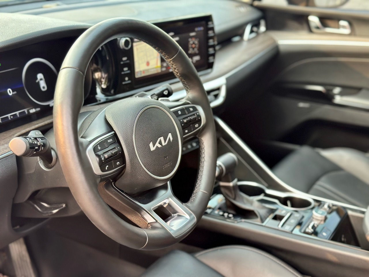 Khoang lái của K5 sở hữu lối thiết kế nhấn mạnh tính khoa học và đảm bảo thẩm mỹ. Bảng táp-lô mang tới một cảm giác sang trọng khi sử dụng các chất liệu là da và ốp kim loại vân gỗ.