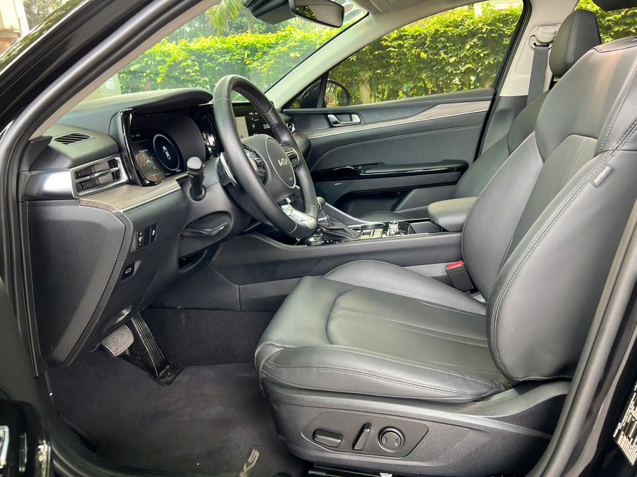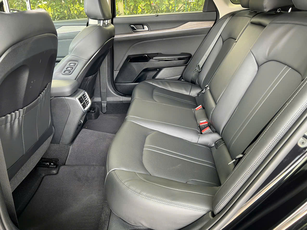 Thiết kế hệ thống ghế trên Kia K5 cũng rất trẻ trung và ấn tượng. Toàn bộ ghế ở các phiên bản đều được bọc da, riêng phiên bản cao nhất GT Line sử dụng ghế da pha hai màu có thêu logo. Cả ghế lái và ghế hành khách phía trước đều có chỉnh điện, trong đó ghế lái thể chỉnh điện 10 hướng.