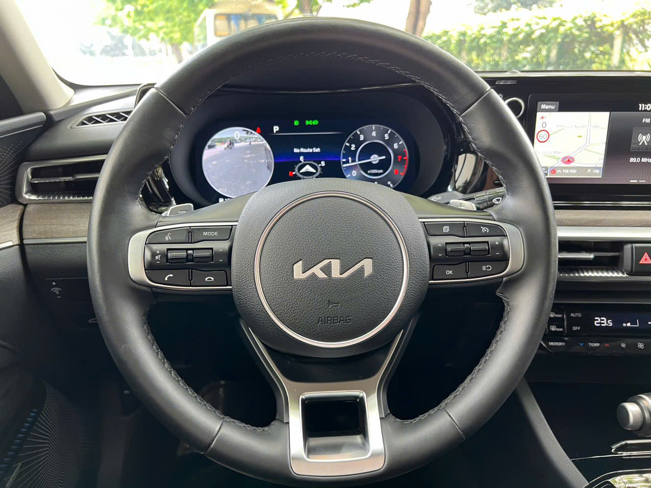Trang bị an toàn cũng là điểm mạnh của K5 khi xe có 6 túi khí, chống bó cứng phanh, cân bằng điện tử, hỗ trợ khởi hành ngang dốc, camera quan sát toàn cảnh, hiển thị điểm mù trên màn hình, cảm biến áp suất lốp, cảm biến va trạm trước, sau, phanh tay điện tử tích hợp chức năng Auto Hold…