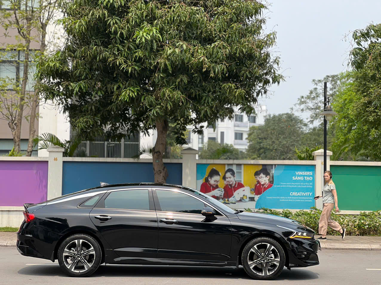 Nhìn từ phía hông, phong cách thiết kế Fastback giúp chiếc Kia K5 tạo điểm nhấn với phần mui vuốt cong từ khoang hành khách đến đuôi giống như một mẫu Coupe với trụ C được kéo dài ra sau. Dọc thân xe là những đường nét nhấn mạnh tính khí động học cũng như đem lại vẻ ngoài thể thao hơn.
