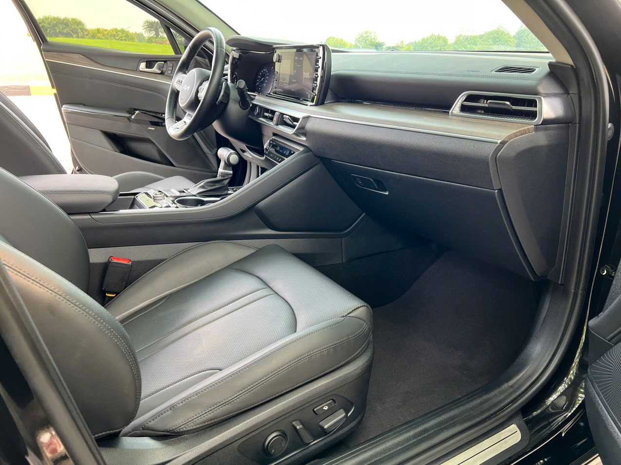 Do định hình là một mẫu xe hướng tới các khách hàng doanh nhân trẻ, Kia K5 còn sở hữu một loạt các tiện nghi nội thất nổi bật. Có thể kể đến như: Cửa sổ trời toàn cảnh, Sạc không dây, Cửa gió điều hòa cho hàng ghế thứ 2, Gương chống chói tự động, Đèn nội thất Moodlight 64 tùy chọn màu, Hiển thị thông tin trên kính lái (HUD)…