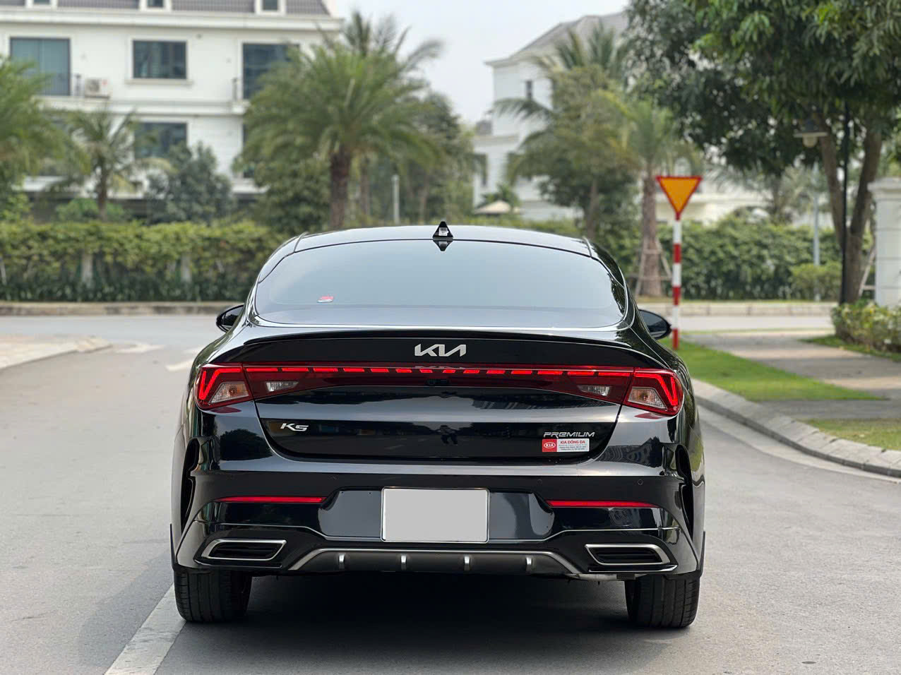 Phần đuôi của Kia K5 tiếp tục mang lại những đường nét thể thao, cá tính và hiện đại. Rất nhiều đường kẻ ngang ở phần đuôi tạo nên sự đồng bộ trong thiết kế. Từ cụm đèn hậu sử dụng công nghệ LED được nối liền 2 bên với kiểu dải đèn được làm kiểu “Heartbeat”; cho tới những đường gân dập nổi tạo ra vẻ ngoài ấn tượng, trẻ trung.
