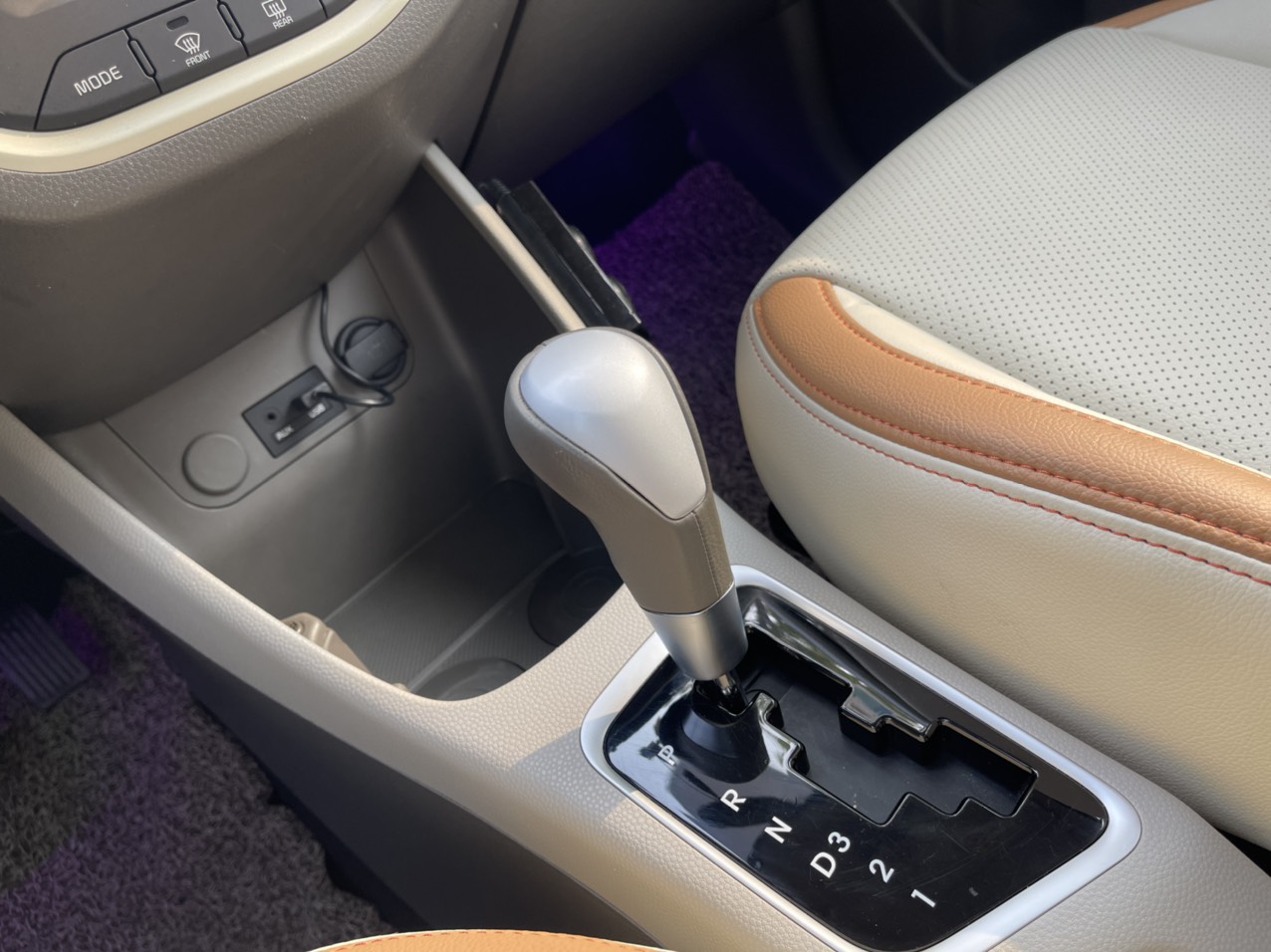 Vô lăng chỉ có hai chấu bọc da với thiết kế tạo thành hình mặt cười khá thân thiệt và trẻ trung, Tích hợp trên vô lăng là các nút điều chỉnh âm thanh và kích hoạt đô quãng đường xe lăn bánh.