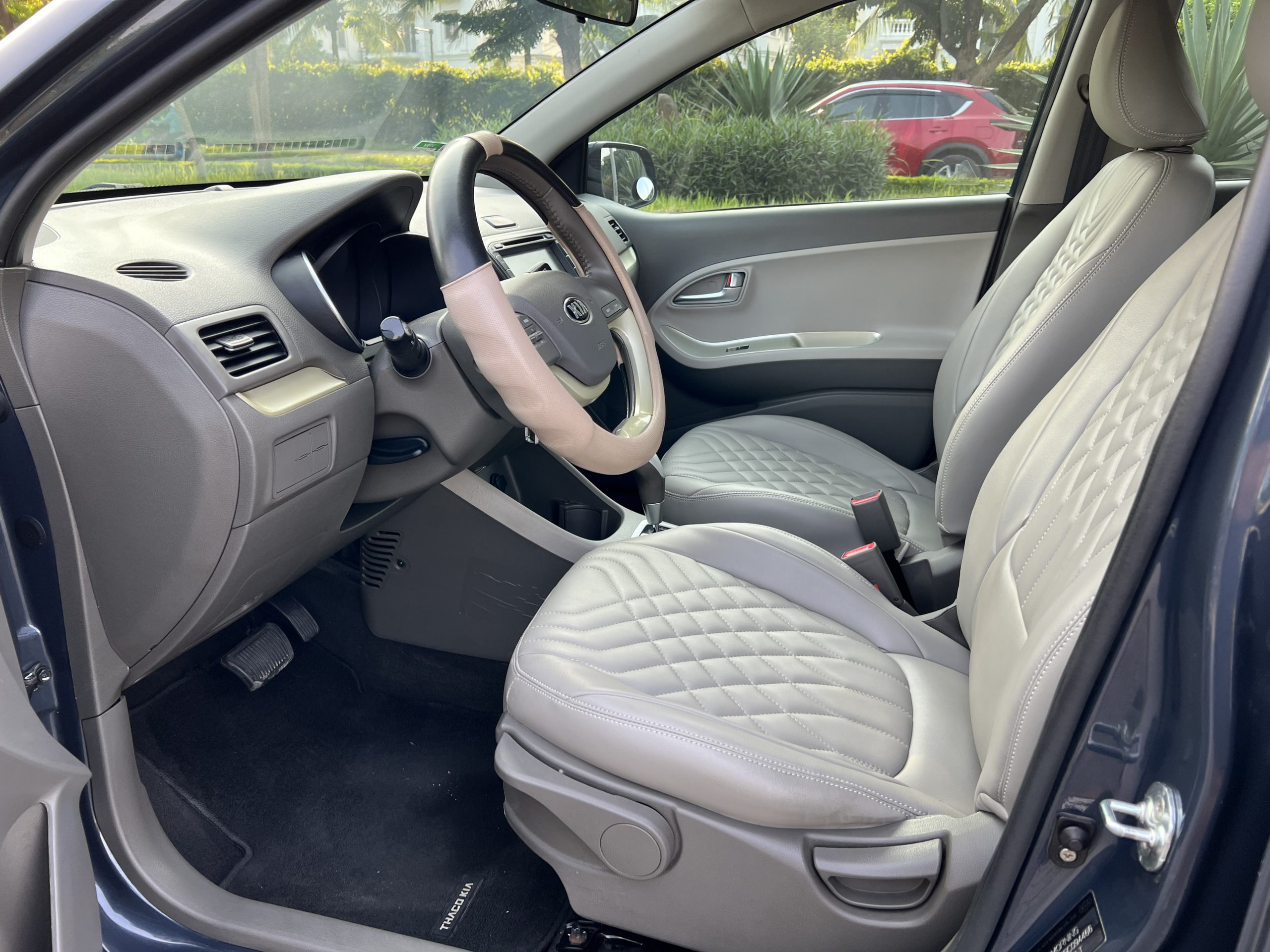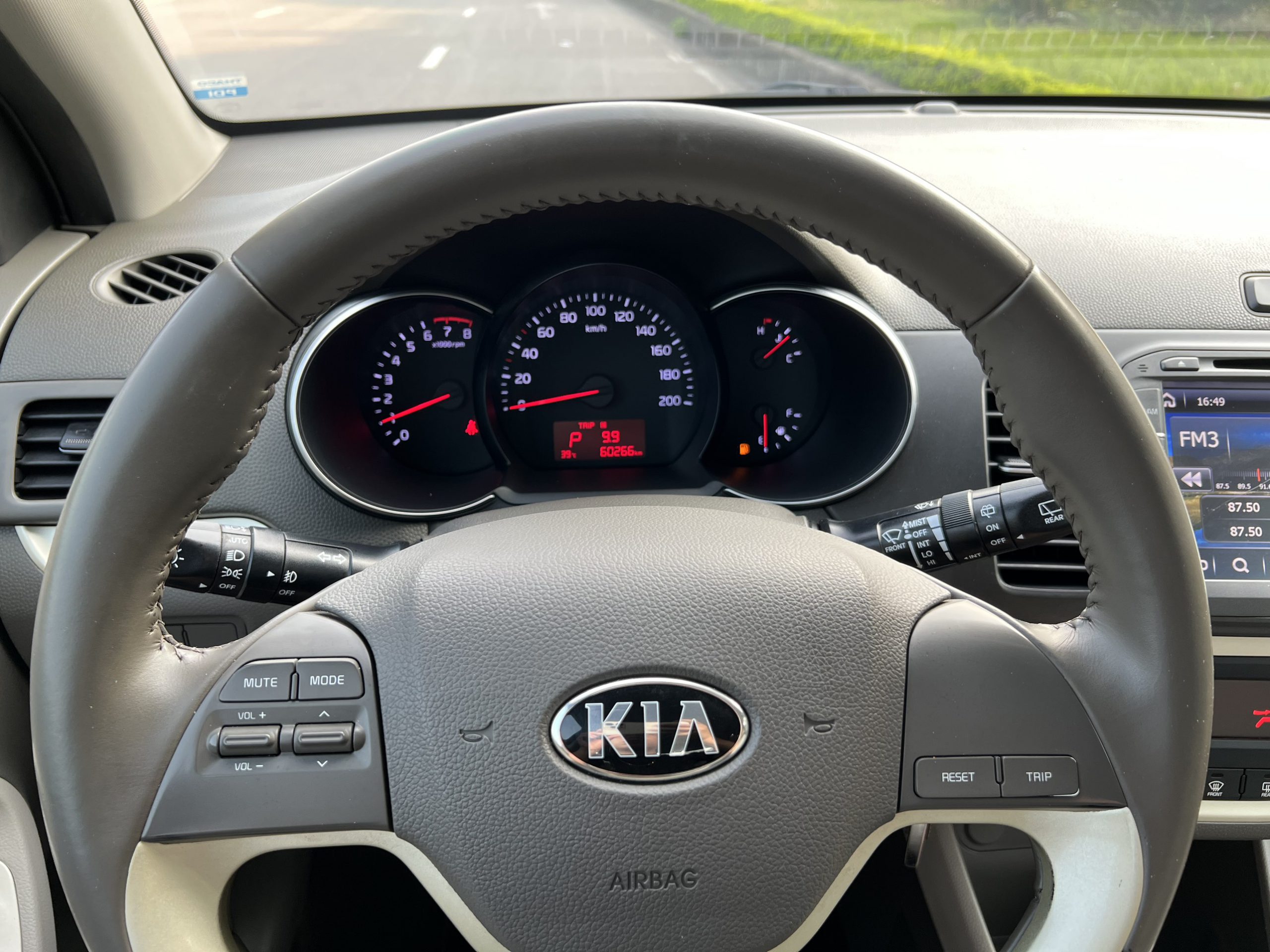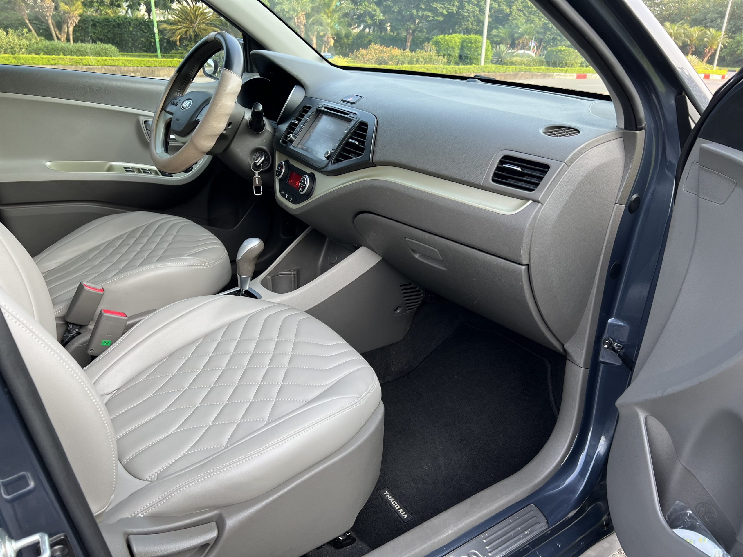 Bên trong, Kia Morning 2016 phần nào mang đến sự thoải mái cho người dùng với không gian được bố trí khoa học, nơi để chân và không gian trần xe tương đối vừa vặn với hành khách cao khoảng 1m70. Các ghế ngồi ở cả bản Si MT và AT đều được bọc da, hàng ghế trước điều chỉnh tay trong khi hàng ghế sau với hai tựa đầu có tỉ lệ gập 60:40 giúp bạn có thêm không gian chứa hàng hóa khi cần thiết. Tạo hình bảng tablo vẫn giữ được sự hài hòa và cân đối, các đường nét kết hợp khéo léo với điểm nhấn là màn hình cảm ứng 7 inch và cụm điều khiển của hệ thống điều hòa tự động. Các nút bấm khác được bố trí hợp lý và vừa tầm tay, giúp cho việc thao tác của cả người lái lẫn hành khách ở ghế phụ thuận tiện, dễ dàng. Hệ thống thông tin giải trí ở Kia Morning 2016 bản Si gồm có đầu CD hoặc DVD, dàn loa 4 chiếc, định vị GPS, hỗ trợ kết nối AUX/USB/Bluetooth với điện thoại. Tay lái trợ lực điện thật sự khác biệt nhờ thiết kế hai chấu trẻ trung, năng động. Bên cạnh việc được bọc da cho cảm giác chắc tay thì Kia Morning 2016 còn tích hợp các nút điều chỉnh âm thanh và kích hoạt việc đo quãng đường xe lăn bánh. Ở phía sau vô-lăng là đồng hồ hiển thị mang phong cách thể thao dạng ba ống được viền chrome cho khả năng quan sát các thông số rõ ràng. Ngoài các trang bị tiện nghi như nguồn điện 12V, sấy cửa kính trước và sau thì vẫn có một vài điểm hạn chế ở nội thất của Kia Morning 2016 như không có bệ tì tay trung tâm, hộc để chai chỉ trang bị ở cửa trước và khá nhỏ.