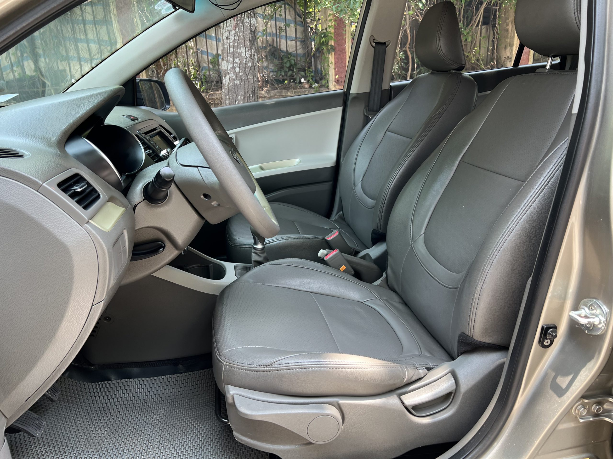 Vô-lăng dạng hai chấu thể thao được bọc da, tích hợp các nút điều chỉnh âm thanh và kích hoạt đo quãng đường xe lăn bánh. Nhờ sử dụng trợ lực điện nên việc sử dụng khá nhẹ nhàng, tuy nhiên cảm giác vẫn hơi lỏng. Đồng hồ phía sau vẫn dạng 3 ống viền chrome, hiển thị tốc độ, vòng tua, tình trạng xe…Xe vẫn sử dụng khóa dạng chìa thay vì nút Start/Stop như đối thủ Hyundai i10.