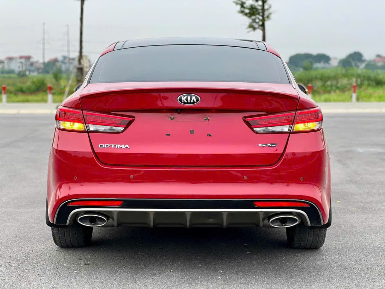 Cản sau của hai phiên bản Optima 2.0 có điểm nhấn là thanh nẹp chrome nối liền hai đèn phản quang và ống xả đơn hình ovan, trong khi đó phiên bản 2.4 GT Line thể thao hơn với cặp ống xả kép cùng các cánh hướng gió, giúp tăng tính khí động học khi xe di chuyển ở tốc độ cao.