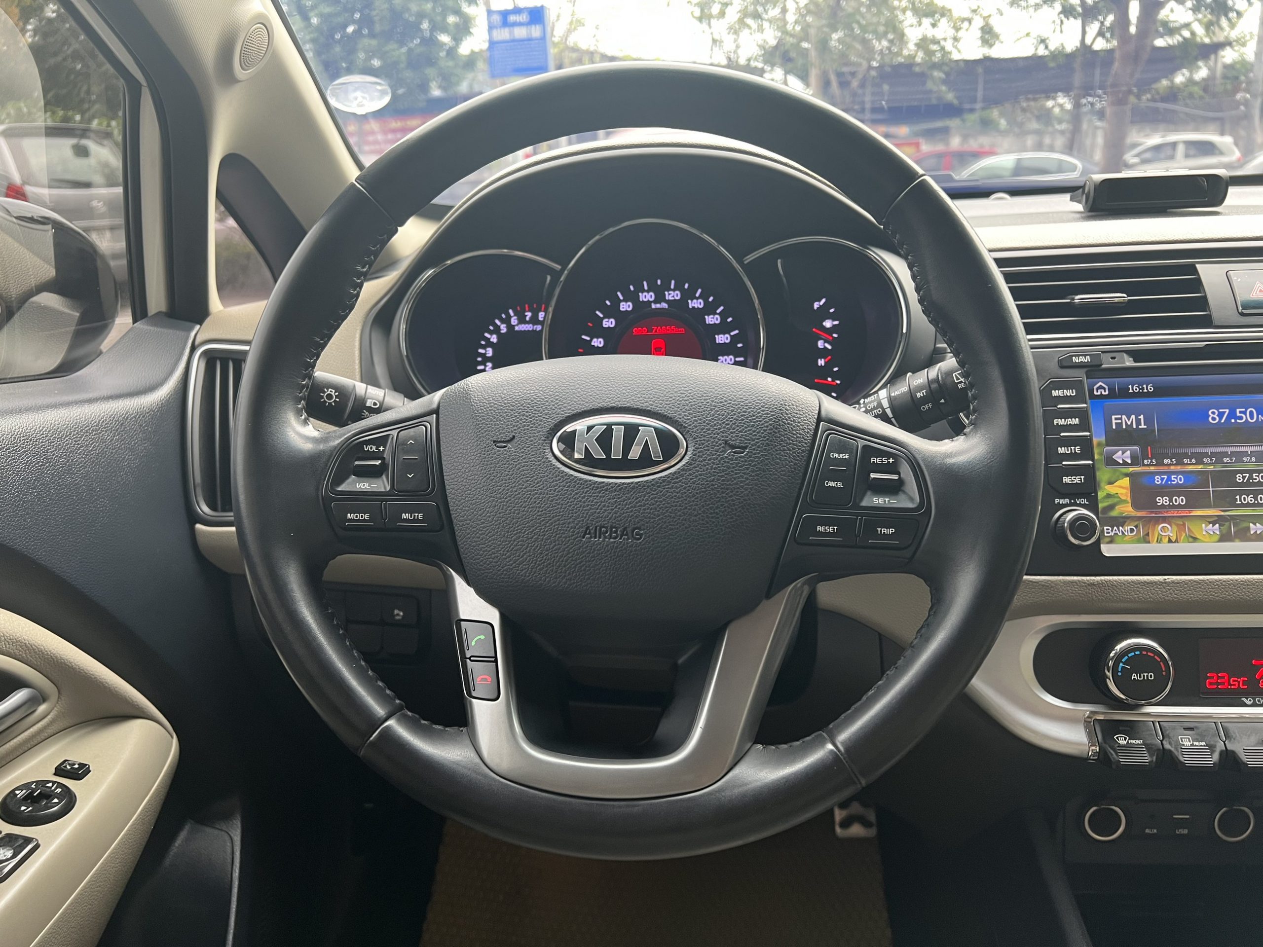 Bên trong cabin xe, Rio Hatchback 2015 được trang bị ghế xe bọc da cao cấp, tay lái bọc da tích hợp các phím điều khiển hệ thống giải trí, điện thoại rảnh tay và hệ thống ga tự động. Xe trang bị hệ thống giải trí màn hình hiển thị đa thông tin DVD, GPS, các cổng kết nối đa phương tiện AUX, USB, iPod , Bluetooth giúp kết nối thiết bị bên ngoài, hệ thống âm thanh 6 loa. Hệ thống điều hòa tự động với chức năng lọc khí bằng ion, cửa sổ trời điều chỉnh điện.