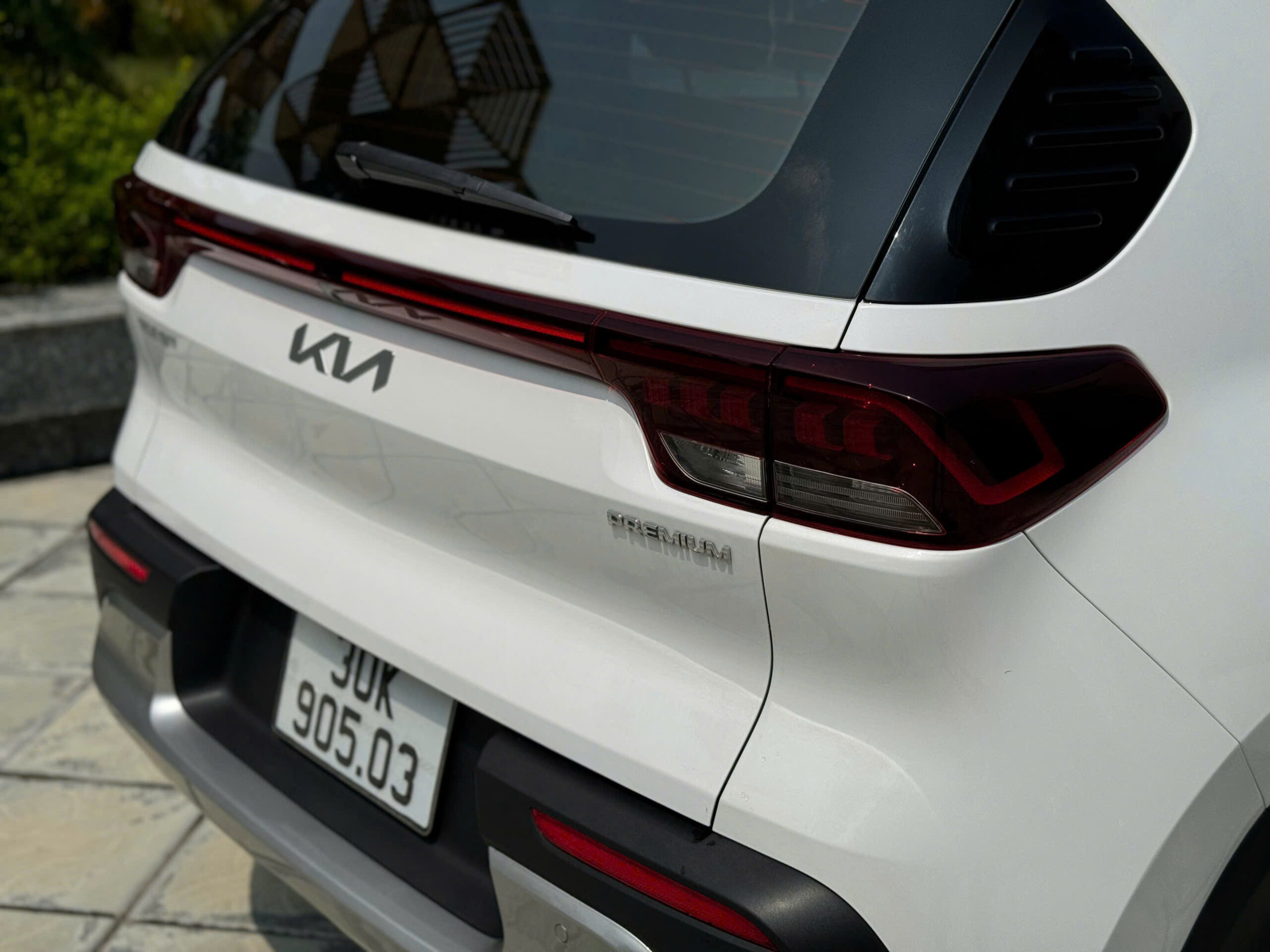 Đánh giá Kia Sonet 2024 khi nhìn từ phía sau, đuôi xe gây ấn tượng với thiết kế gãy gọn và nam tính, phảng phất chút dấu ấn từ “đàn anh” Kia Sportage. Cụm đèn hậu full LED (trừ bản Deluxe sử dụng bóng Halogen) chạy dài xuyên suốt theo phương ngang nối liền hai bên.