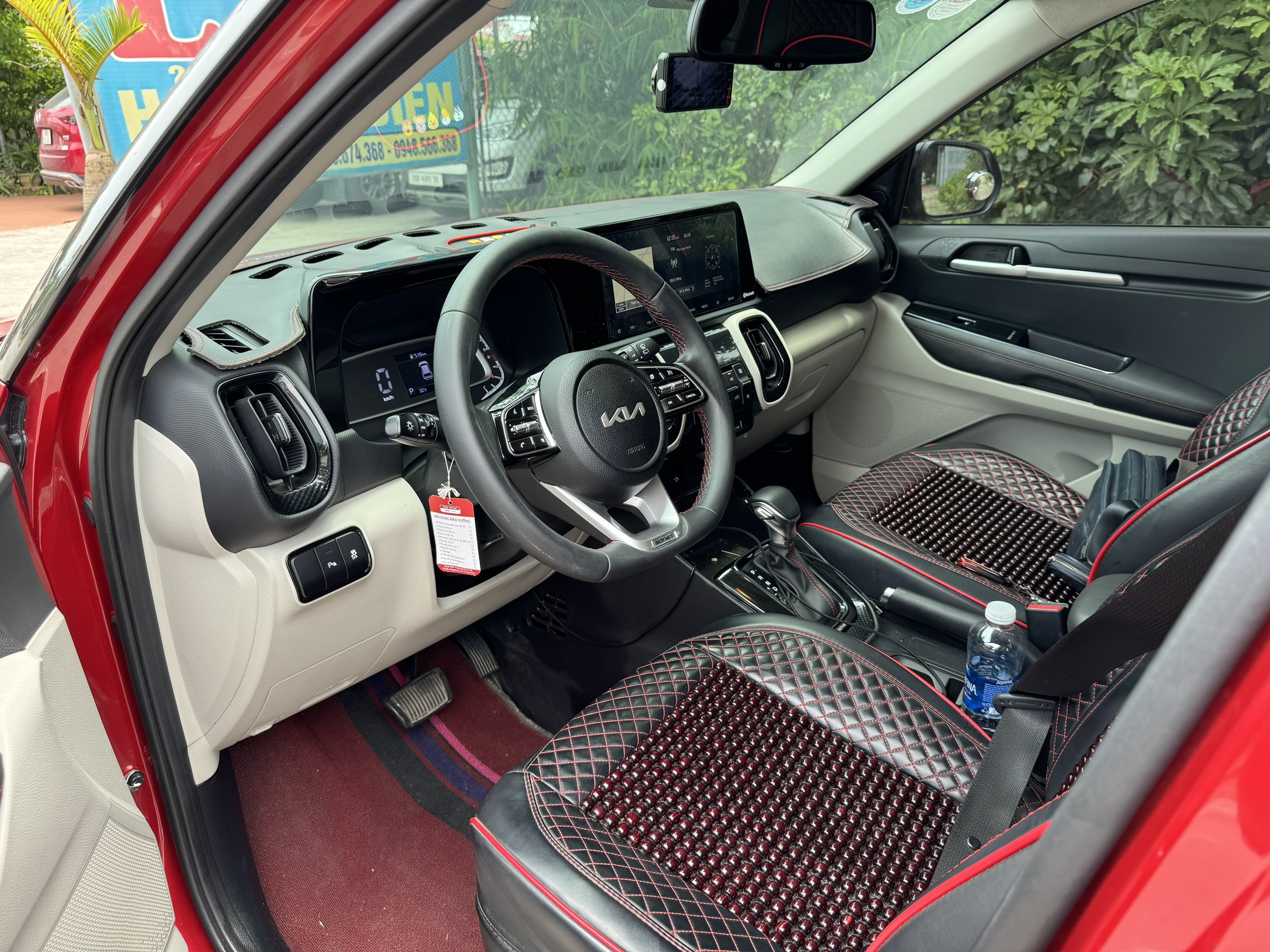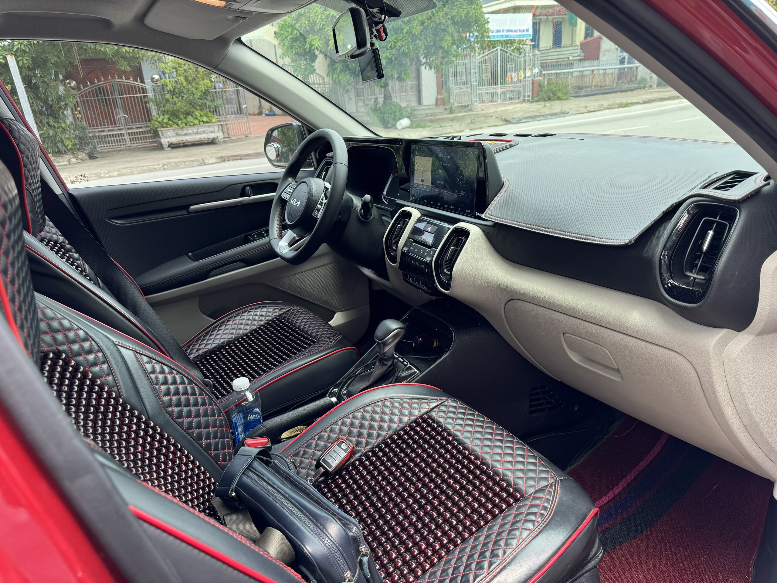 Vô lăng search KIA Sonet 2022 dạng 3 chấu, to hơn, bọc da và viền chỉ khâu màu đỏ đẹp mắt. Đáng chú ý là vô lăng Kia Sonet mang thiết kế thể thao kiểu đáy bằng (D-cut) giúp ra vào xe dễ dàng hơn, ngoài ra còn có điều khiển hành trình cruise control, giúp các hành trình trên cao tốc được thoải mái hơn. Các nút bấm tích hợp gồm đàm thoại rảnh tay, tăng giảm âm lượng, chỉnh chế độ đồng hồ.
