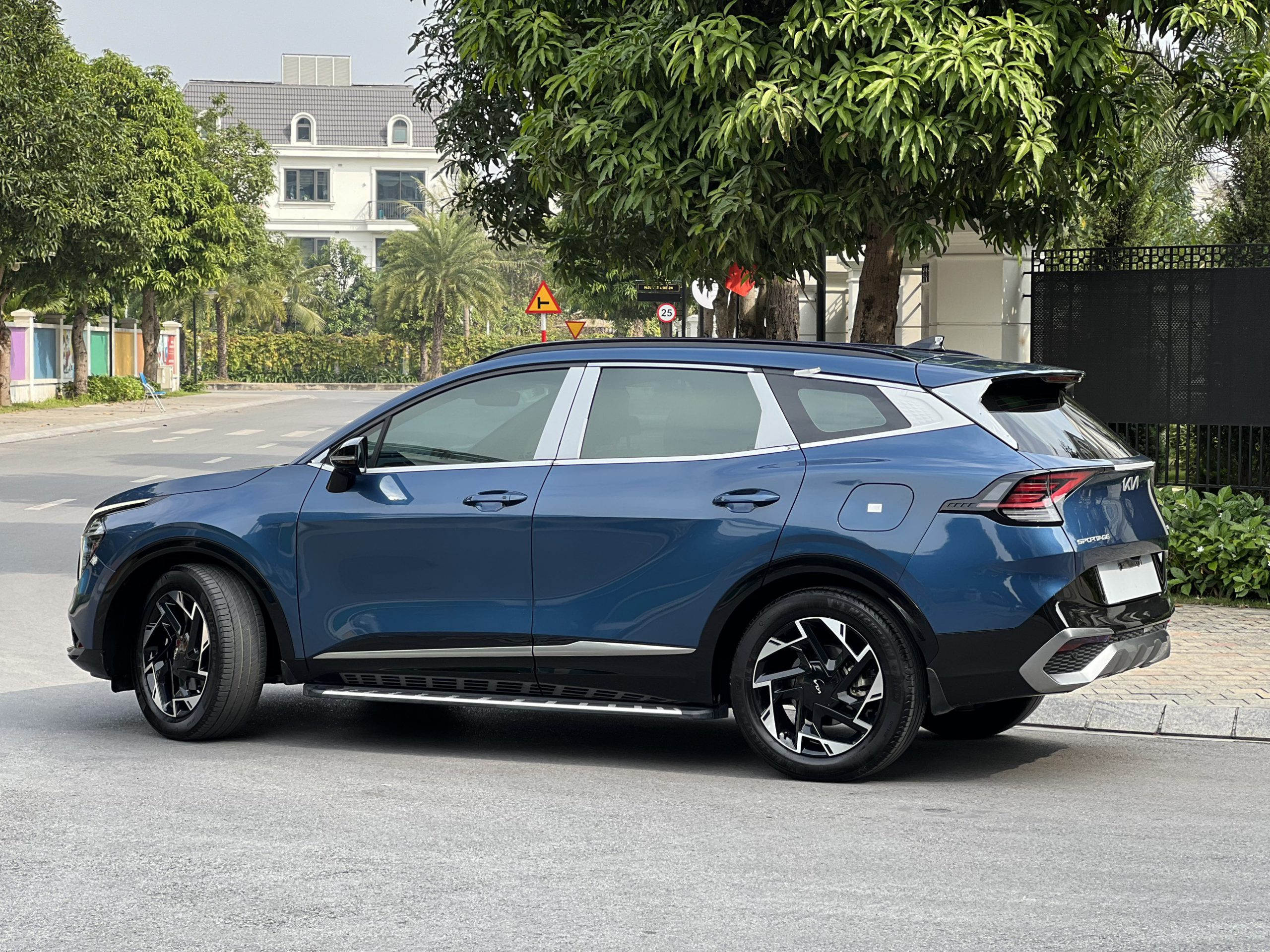 Phần thân KIA Sportage mang đậm phong cách thể thao, mạnh mẽ với sự xuất hiện của những đường gân dập nổi ngang hông cùng trần xe màu đen tương phản.
