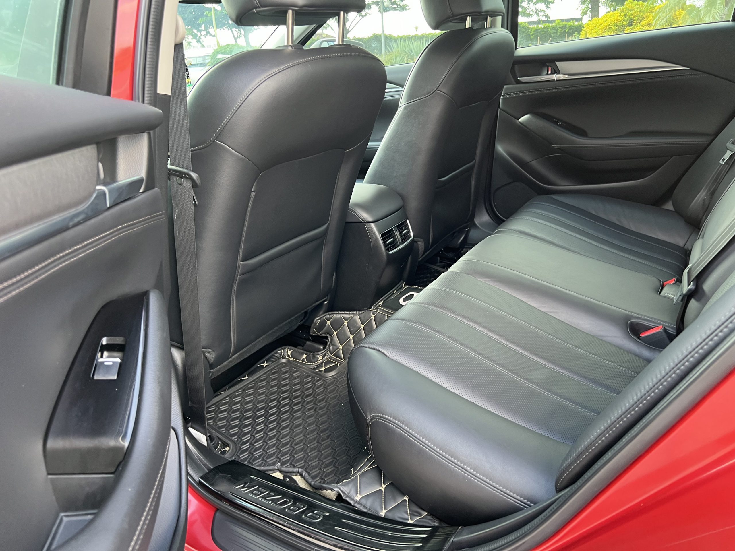 Không gian ngồi ở hàng ghế phía sau không quá rộng rãi, thậm chí không bằng một số mẫu xe hạng C như Civic, Altis. Tuy nhiên, mức độ tiện nghi mà Mazda 6 mang lại cho hành khách phía sau lại khá tốt: Ghế được thiết kế khá ôm và có độ ngả tốt. Các tiện ích đi kèm có thể kể đến: Cửa gió điều hòa riêng, Bệ tỳ tay, Hộc đựng điện thoại có cổng sạc, Rèm điện che nắng phía sau…