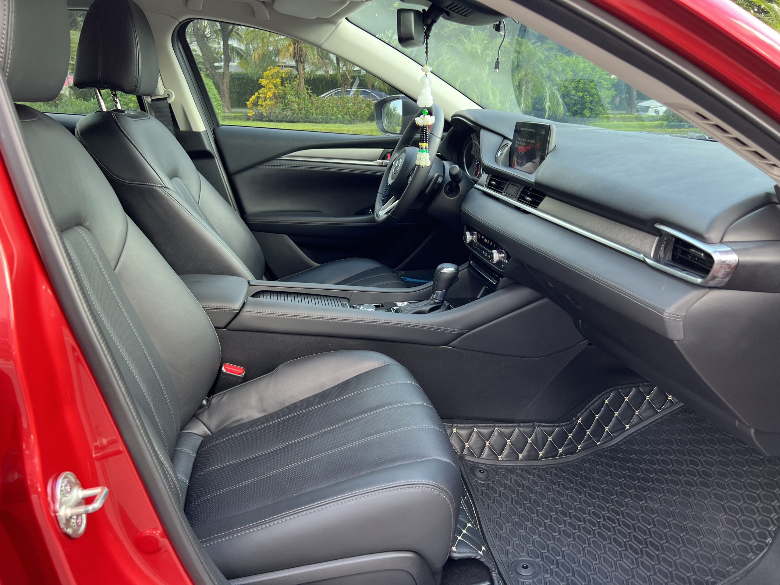Vô lăng 3 chấu bọc da, trợ lực điện với đầy đủ hệ thống nút bấm điều chỉnh menu, âm lượng, cruise control… Ngoài ra, Mazda 6 còn được trang bị lẫy chuyển số trên vô lăng ở những phiên bản Premium. Phía sau vô lăng là cụm 2 đồng hồ Analog cùng 1 màn hình Digital hiển thị thông tin hỗ trợ lái. Xe cũng được trang bị tính năng HUD kính lái vô cùng hữu dụng và trực quan.