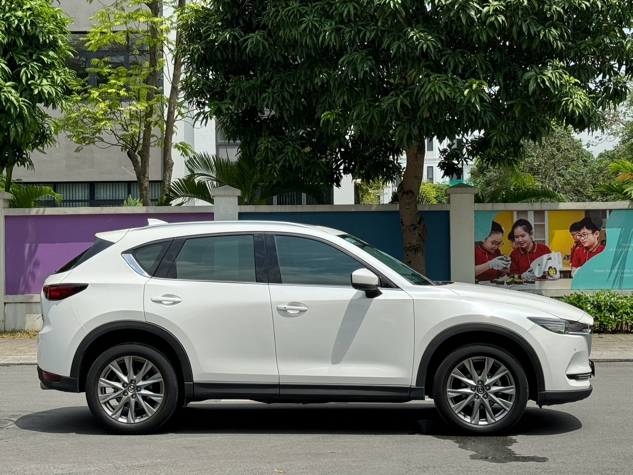 Nhìn từ thân xe, CX-5 2022 vẫn cực kỳ lôi cuốn với kiểu dáng “báo vồ mồi” đặc trưng của ngôn ngữ thiết kế KODO. Trụ B và trụ C của xe cũng được sơn đen để làm tăng tính liền lạc và thống nhất cho khu vực khung kính. Gương chiếu hậu của CX-5 vẫn tiếp tục được đặt tách biệt ở phần thân thay vì góc trụ A như truyền thống, giúp tăng tầm quan sát cho người lái và tạo ấn tượng hiện đại cho xe. Tất cả các phiên bản đều được trang bị tiêu chuẩn gương hậu chỉnh và gập điện. Tuy nhiên, do chỉ thuộc thế hệ 6.5G nên CX5 2022 vẫn chưa có chức năng gập gương tự động khi khoá cửa như hai “hậu bối” là Mazda3 và CX-30.