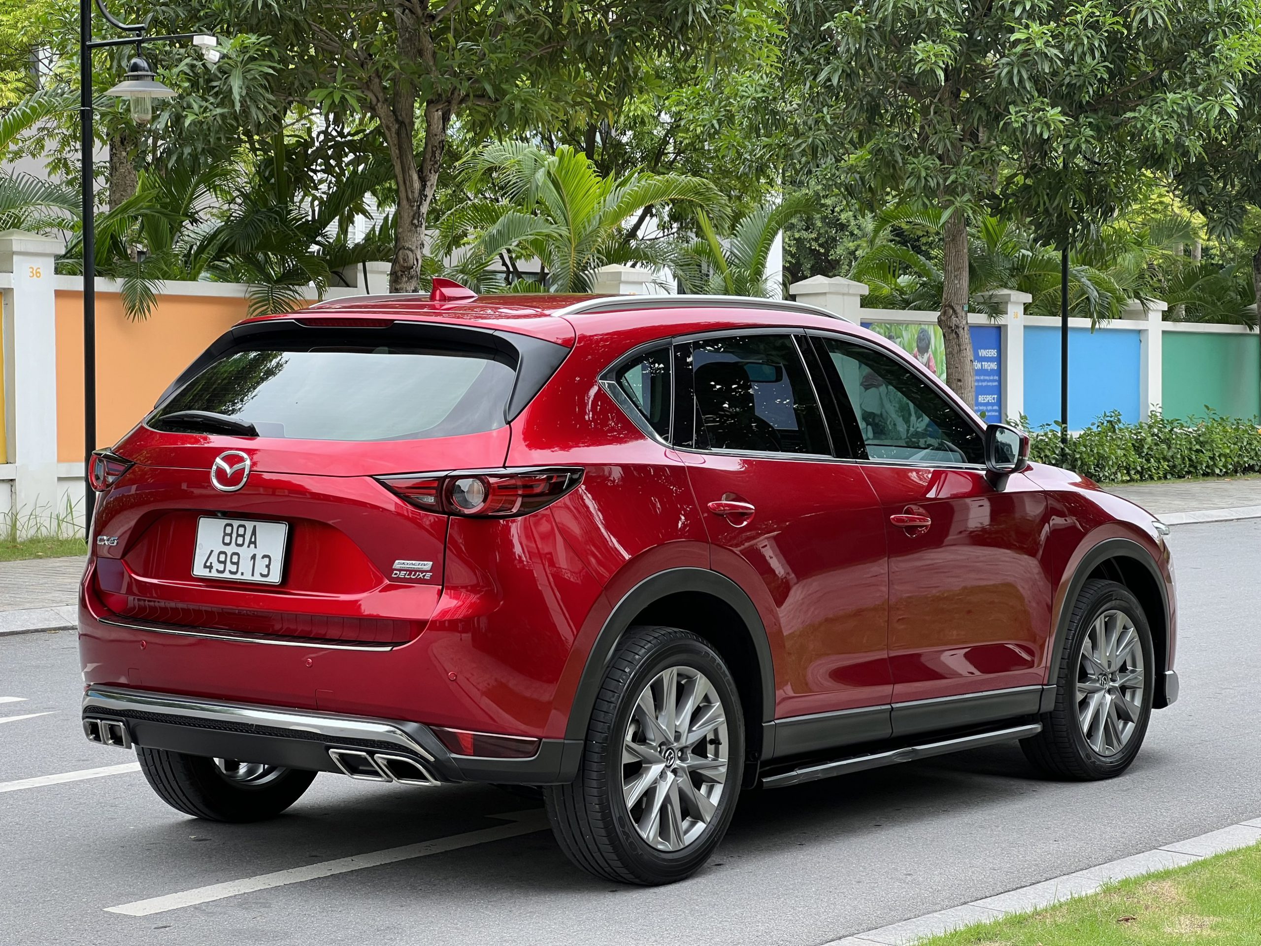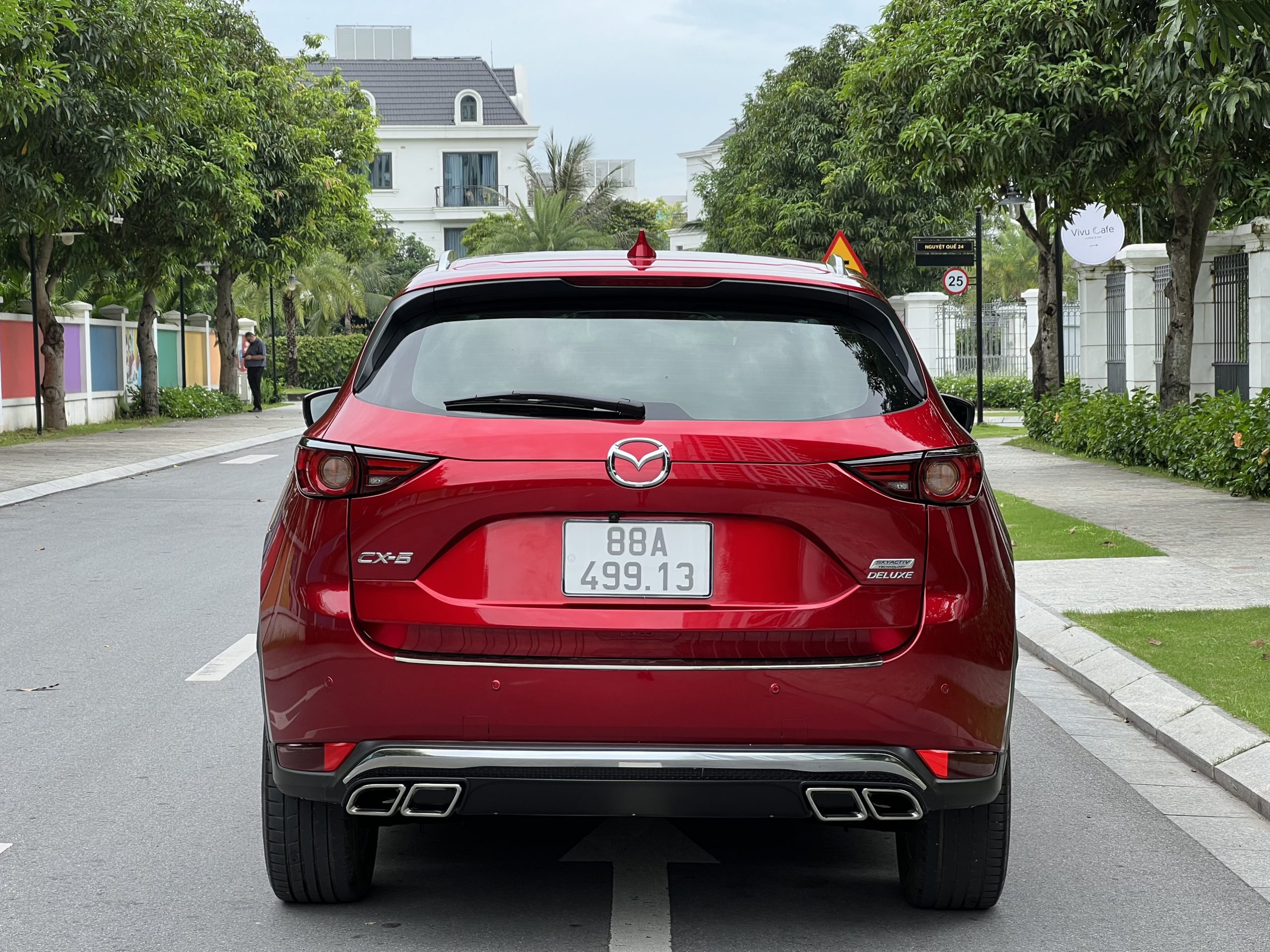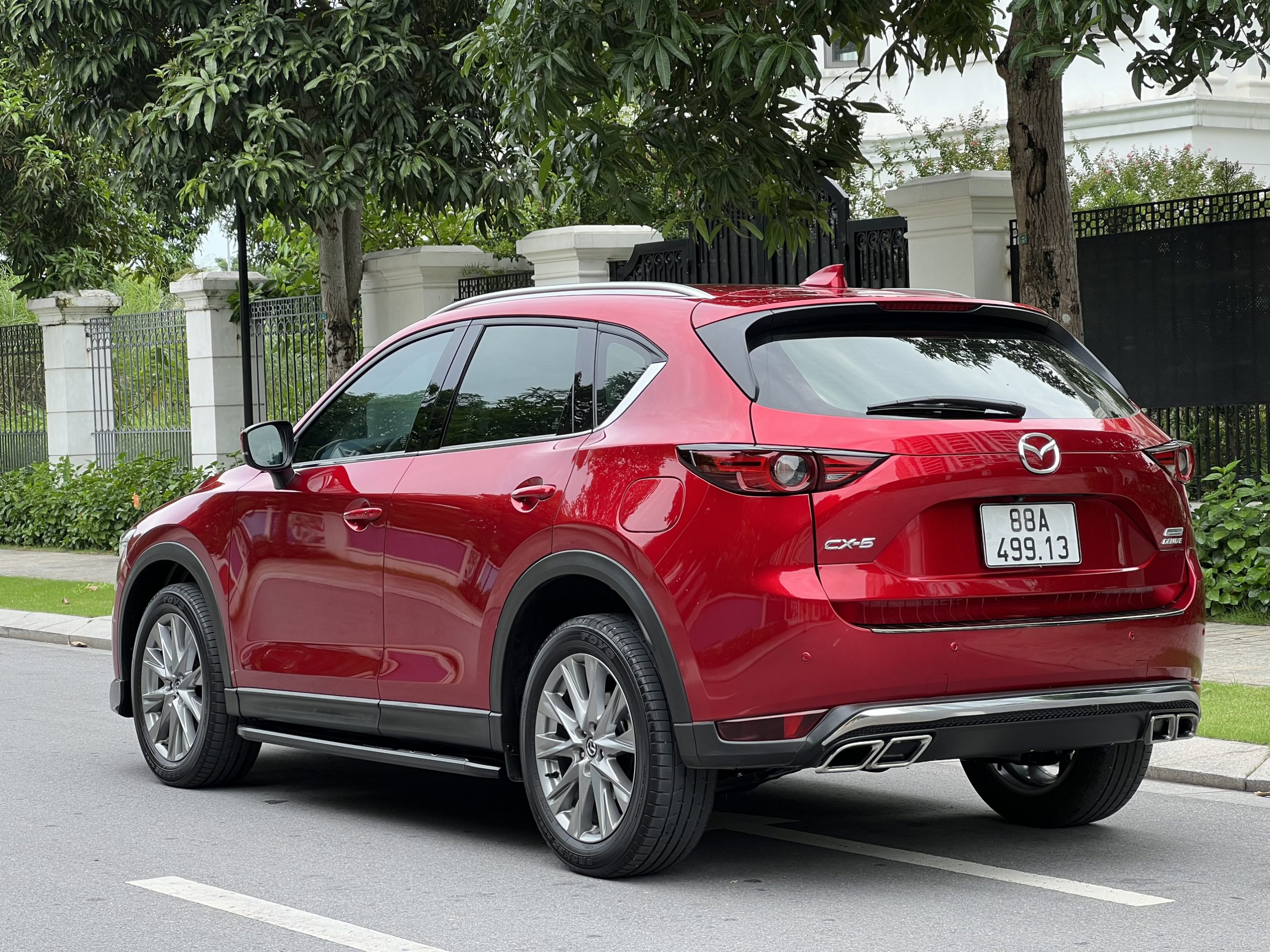 Thiết kế đuôi xe của CX-5 được nhiều khách hàng đánh giá cao ở sự đơn giản và đẹp mắt. Cụm đèn hậu LED dạng mắt chim ưng vẫn tiếp tục được sử dụng, kết hợp với cản sau tối giản và chụp ống xả kép mạ chrome tạo nên dáng vẻ thể thao và cân đối cho xe.