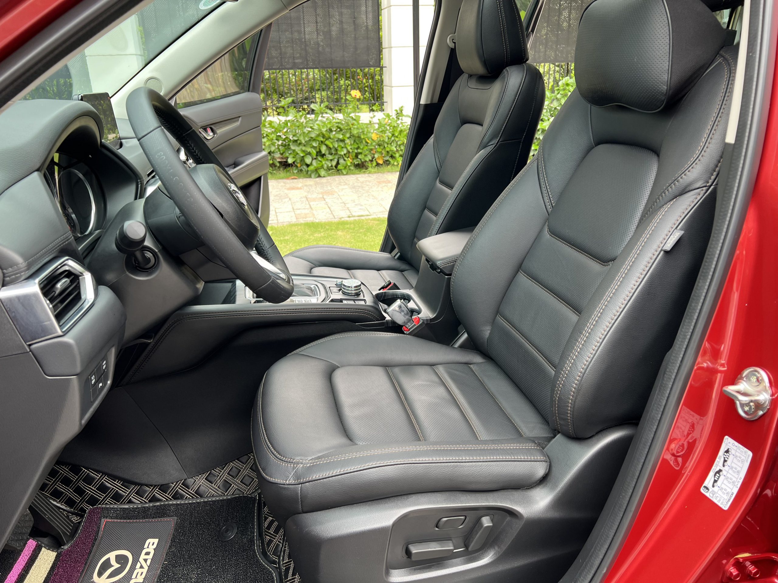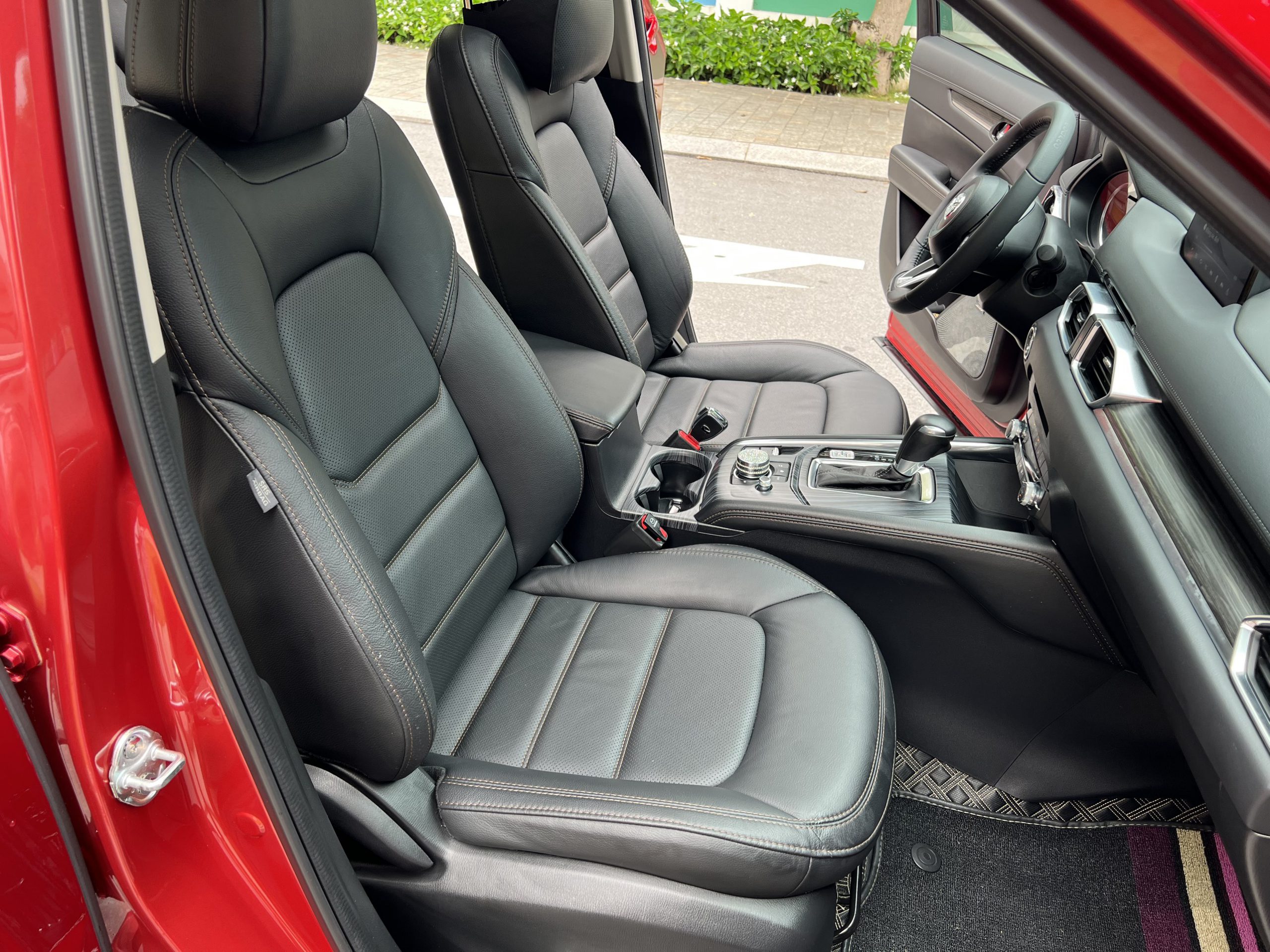 Ghế ngồi trên tất cả các phiên bản của CX5 2022 đều được bọc da màu xám. Tính năng ghế lái chỉnh điện là tiêu chuẩn ở mọi phiên bản. Tuy nhiên, tùy chọn ghế phụ chỉnh điện, nhớ 2 vị trí ghế lái và làm mát hàng ghế trước chỉ có trên biến thể dẫn động hai cầu AWD của phiên bản 2.5 Signature Premium (phiên bản này còn một biến thể dẫn động một cầu). Hàng ghế sau có đủ tựa đầu 3 vị trí và bệ để tay trung tâm tích hợp đựng cốc.